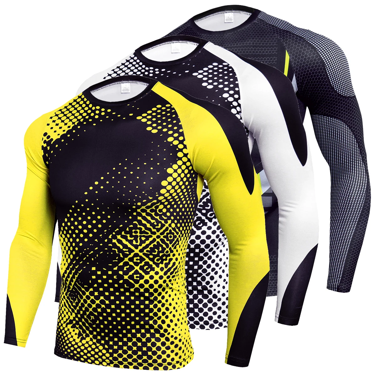 Мужская компрессионная рубашка AYJK7 с длинным рукавом для фитнеса,...