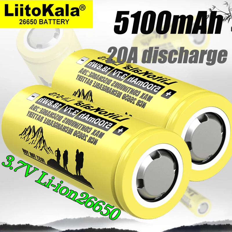 Аккумуляторная батарея Liitokala, 26650, 3,7 в, 20 А, 26650A, 5100м...