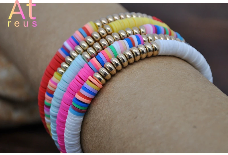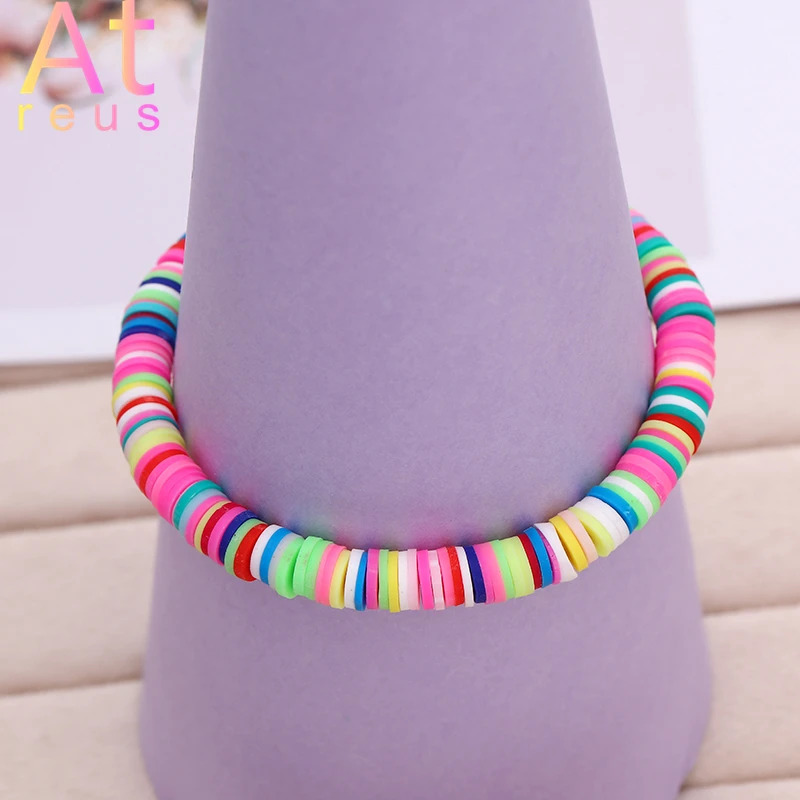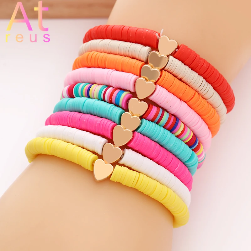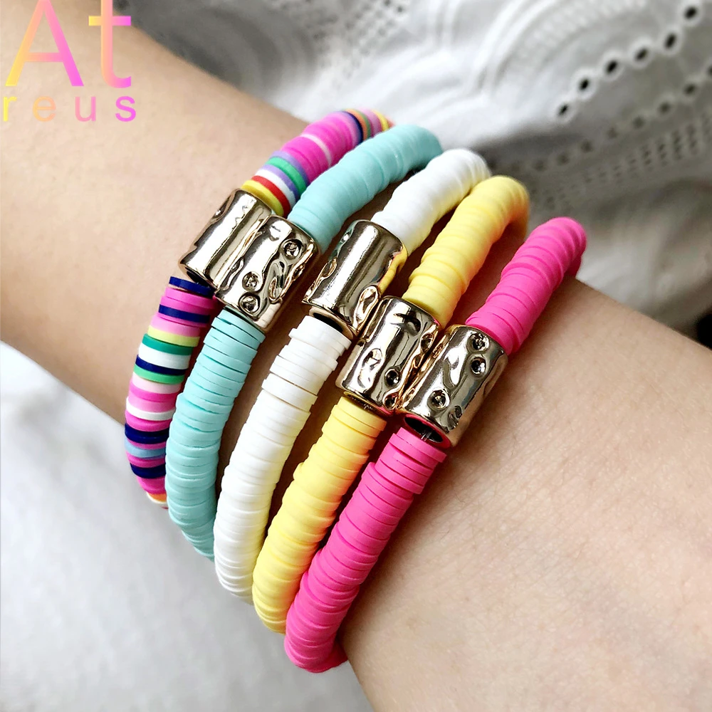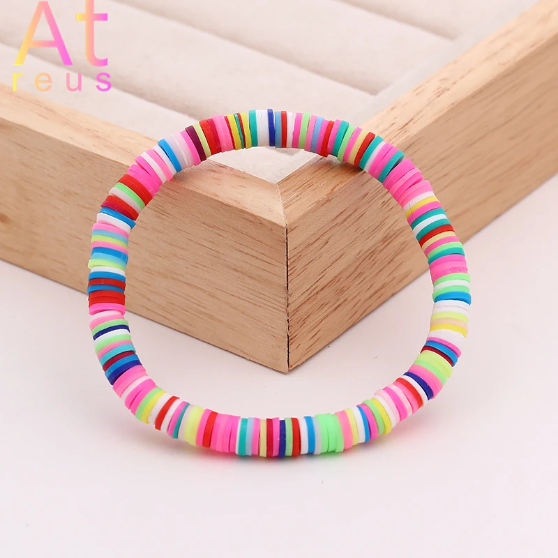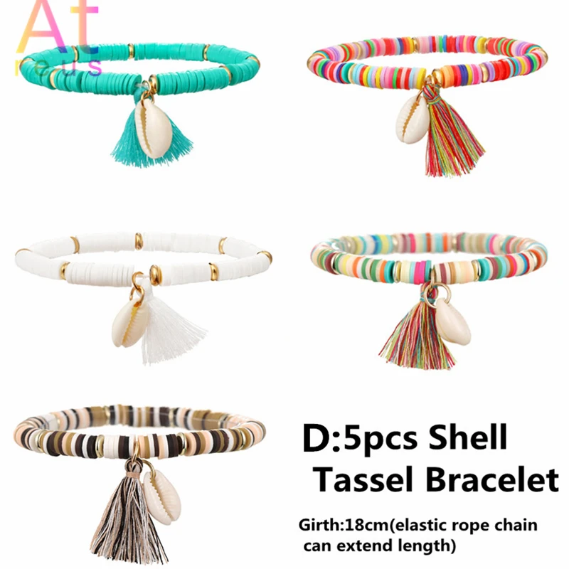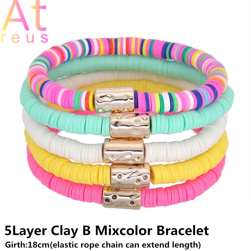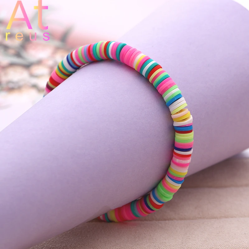 1-5 шт. 9 цветов многоцветный Браслет из полимерной глины с плоскими бусинами для женщин эластичный браслет-цепочка набор 2021 новые богемные модные ювелирные изделия