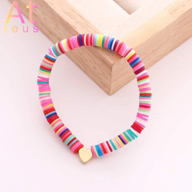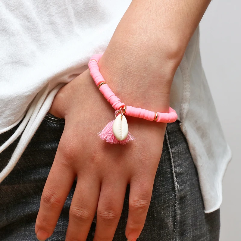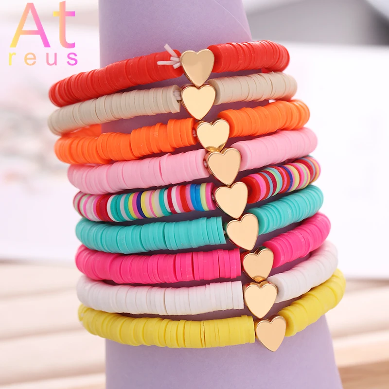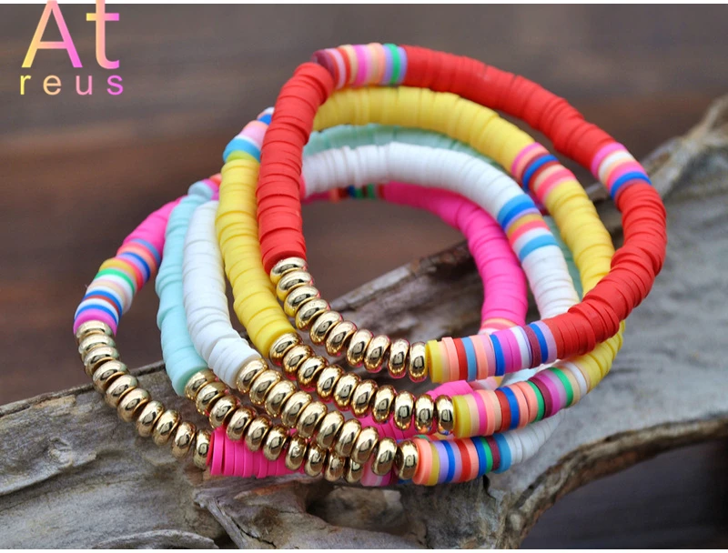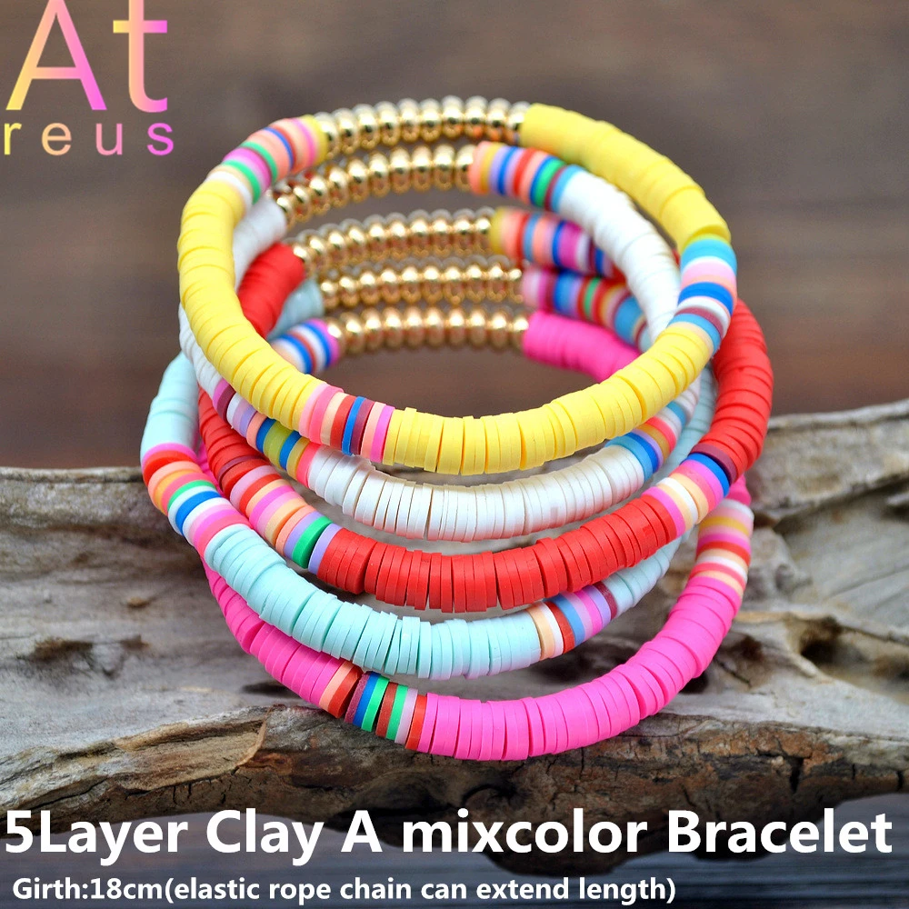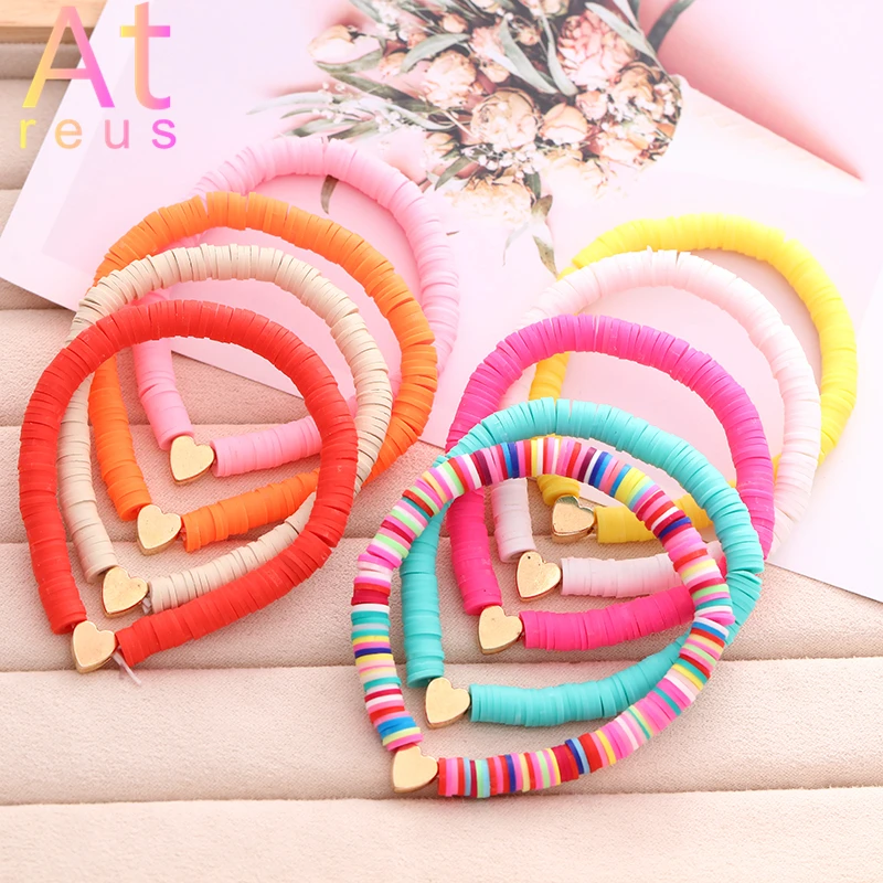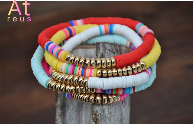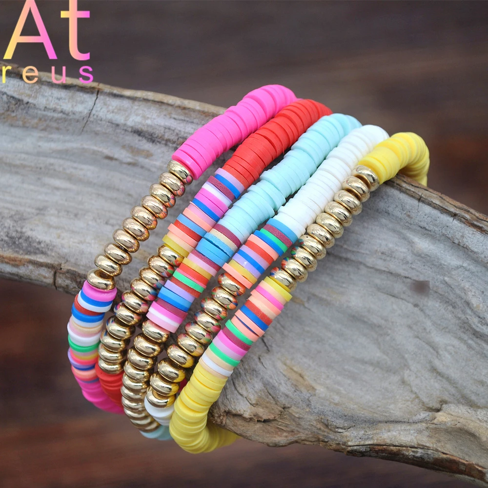 1-5 шт. 9 цветов многоцветный Браслет из полимерной глины с плоскими бусинами для женщин эластичный браслет-цепочка набор 2021 новые богемные модные ювелирные изделия