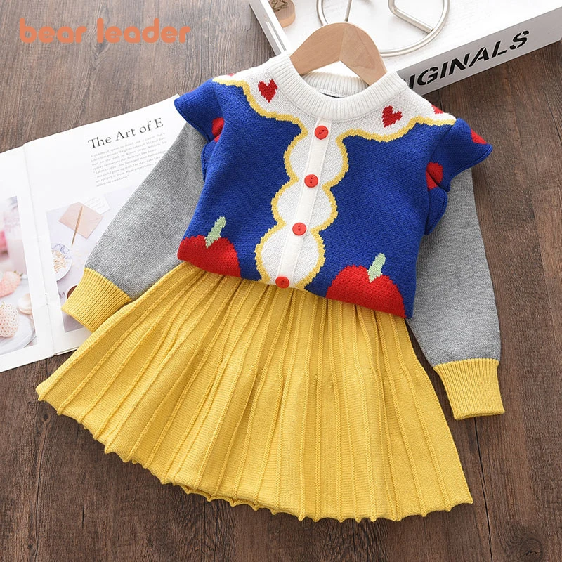 Bear Leaderдетские вязаные костюмы для маленьких девочек; Свитера принцесс с героями мультфильмов; Пальто; Милое платье с оборками; Комплекты одежды
