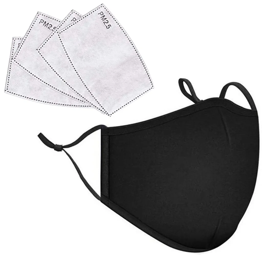 Маска хлопковая черная Pm2.5 с фильтром из активированного угля, 2 шт.