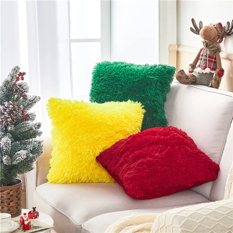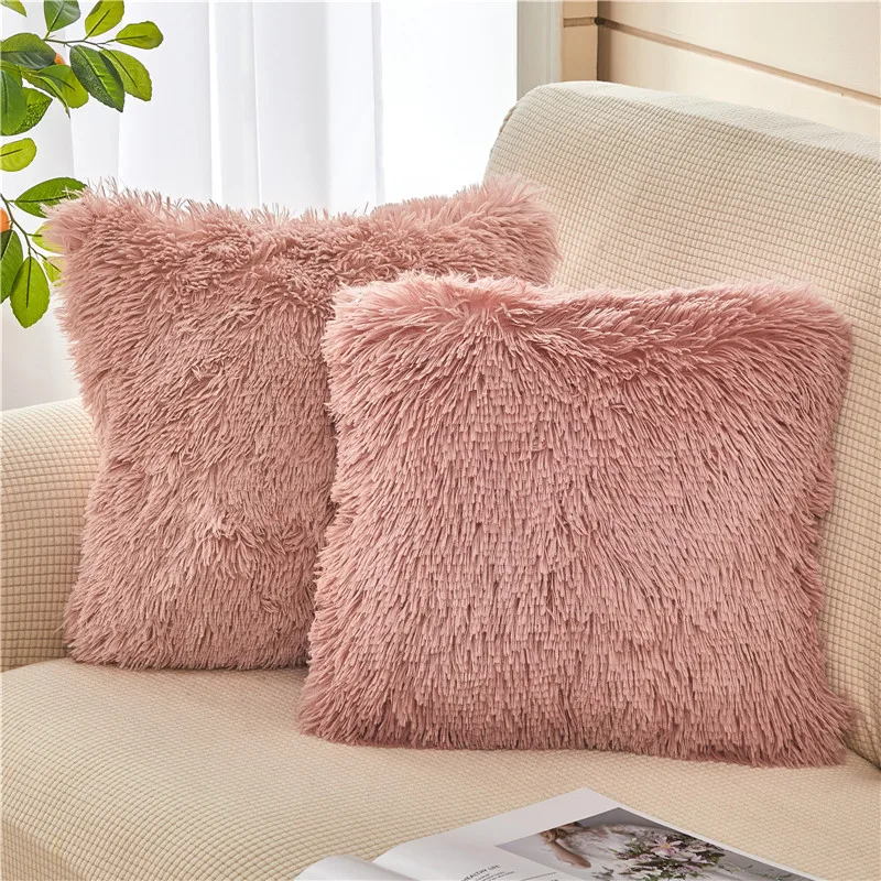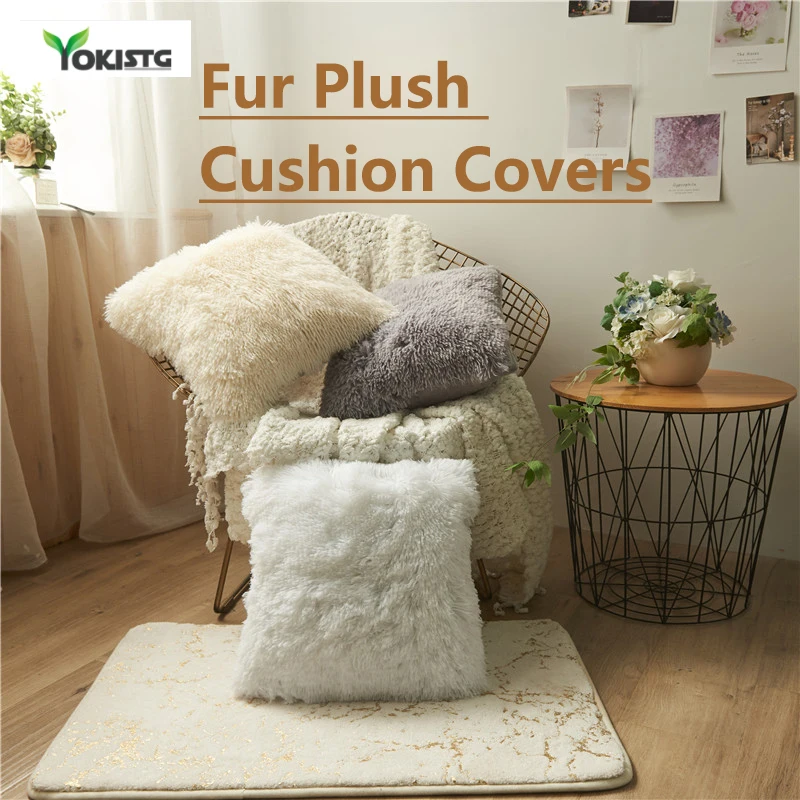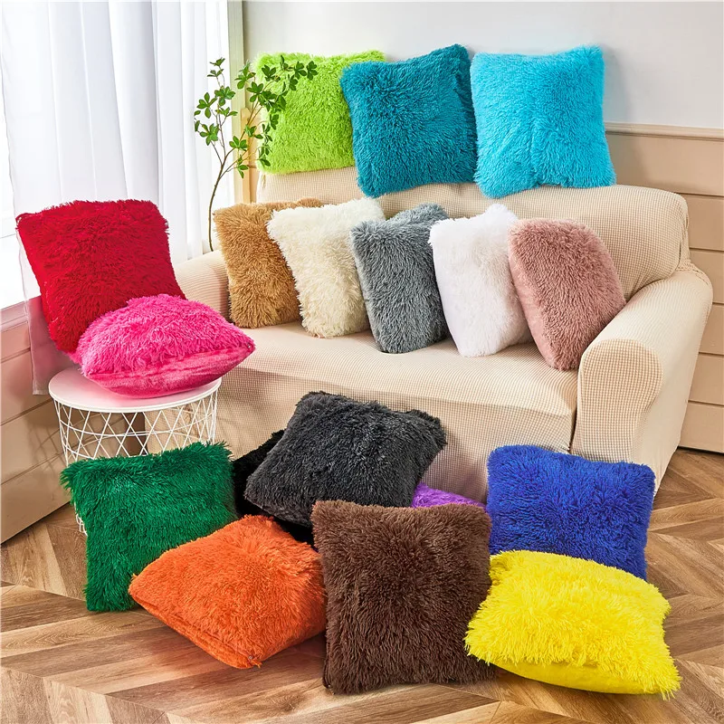 Мягкие Меховые плюшевые подушки, искусственные наволочки для гостиной, искусственная наволочка, белый, синий