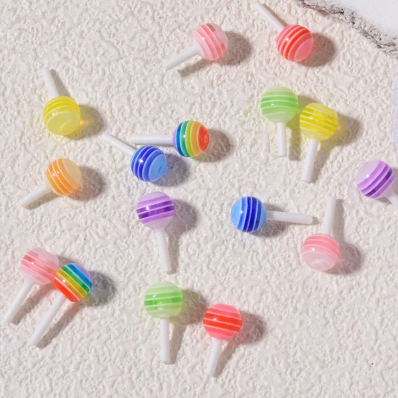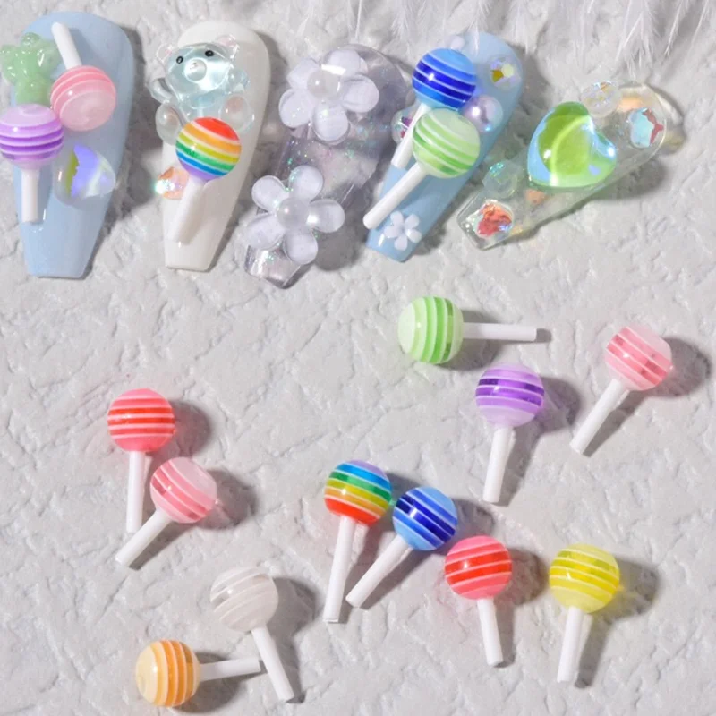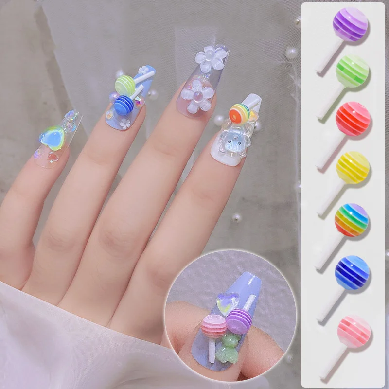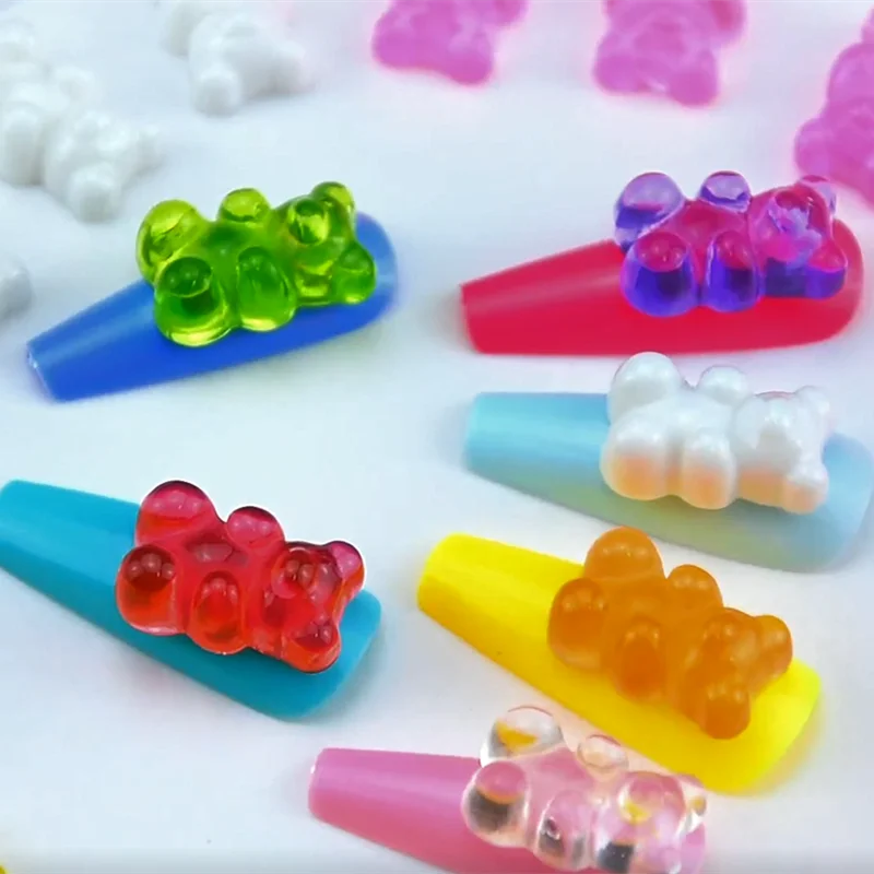 Милый разноцветный Радужный леденец, украшение для ногтей, 3D милые аксессуары, подвески в виде маникюрного медведя, наклейки для ногтей