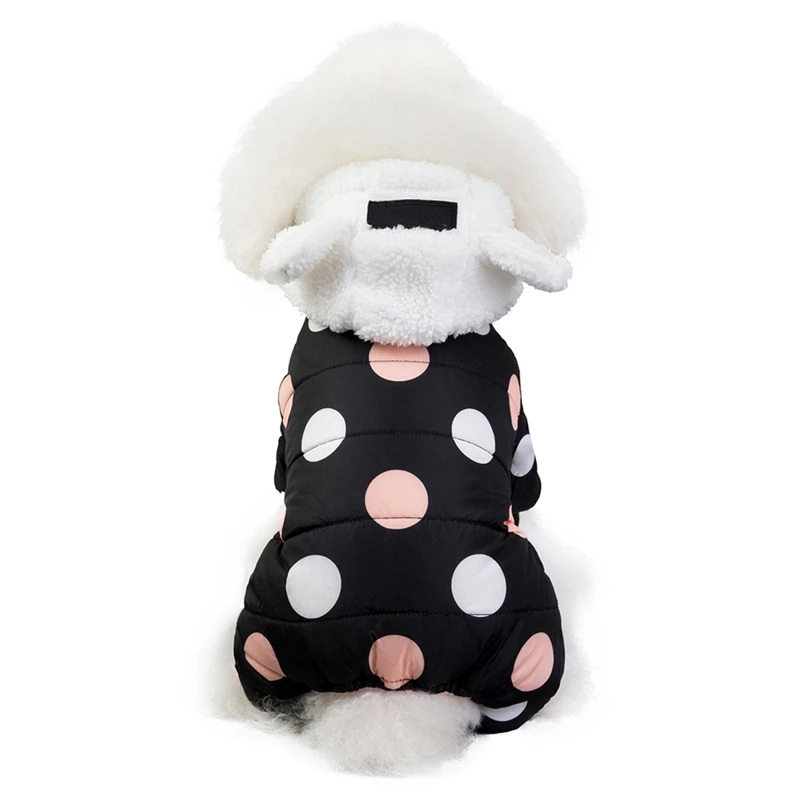 Куртка с принтом в горошек для маленьких собак, одежда для домашних животных, зимняя Толстовка для собак, комбинезон, одежда, симпатичное флисовое пальто с хлопковой подкладкой и ушками