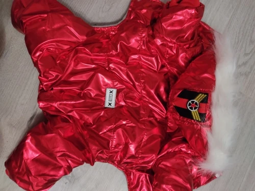 Заказ пришёл в Украину Харьков быстро за 2 недели, на Йорка со спинкой 35 см и объемом груди 45 см, размер XL, хорошо подошёл, но по объёму комбезик широковат, надо было сделать вторую кнопку, как делают на других комбинезонах, и ещё не хватает кнопки на капюшоне, чтобы не падал на морду собаки, ткань шуршащая, сначала собака даже медленно ходила, внутри утеплитель, на зиму будет хорошо