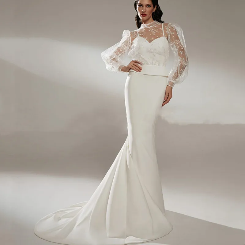 Женское свадебное платье-Русалка It's yiiya, белое платье 2 в 1 на тонких бретельках с длинным рукавом и молнией на лето 2021