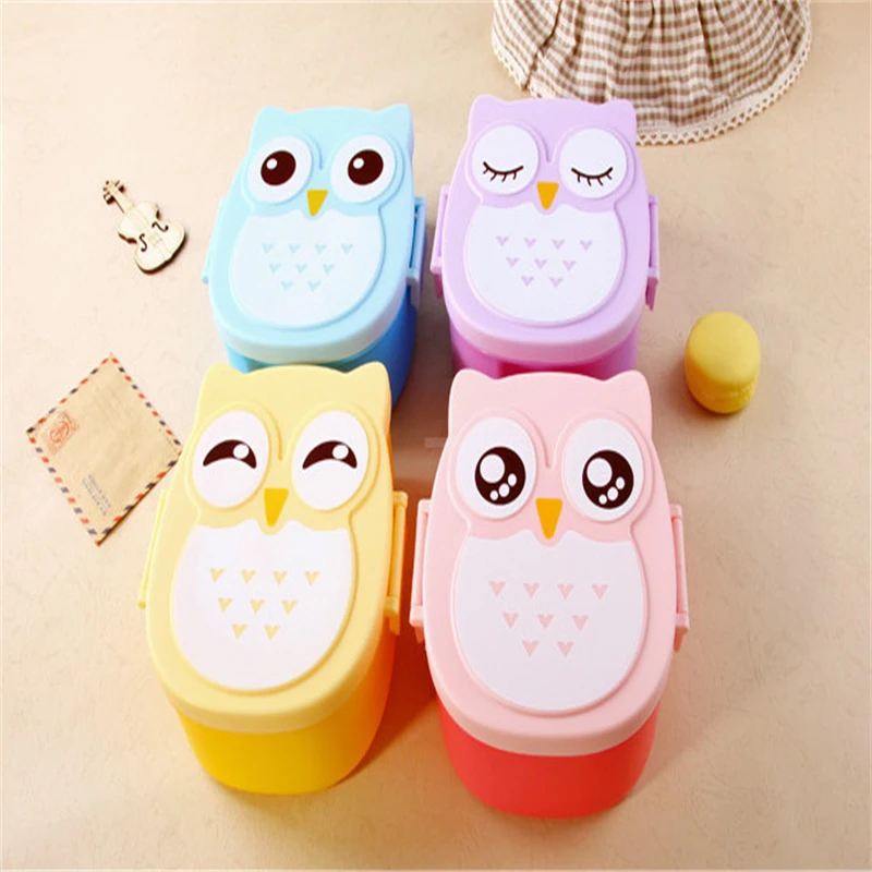 Ланч-бокс в виде совы, Ланч-бокс, мультяшный милый детский пластиковый герметичный контейнер для сохранения свежести, может использоваться в микроволновой печи