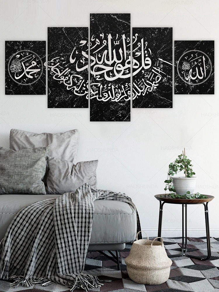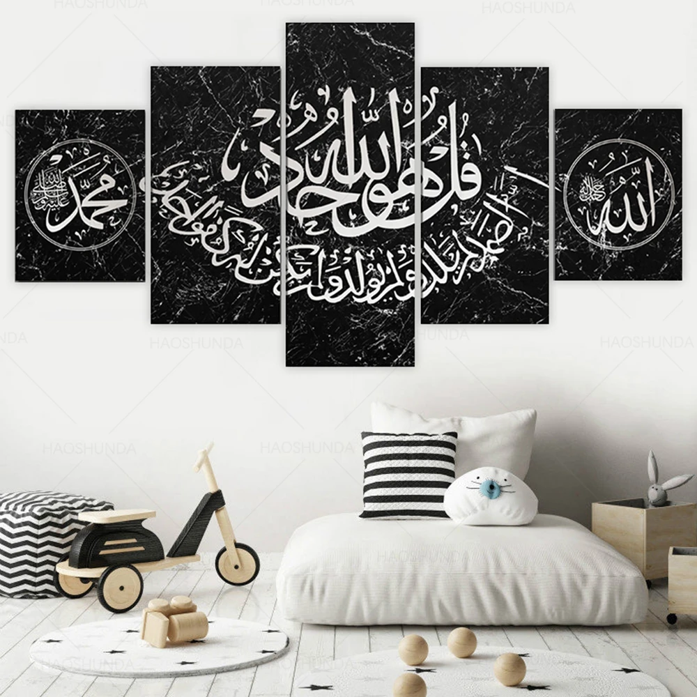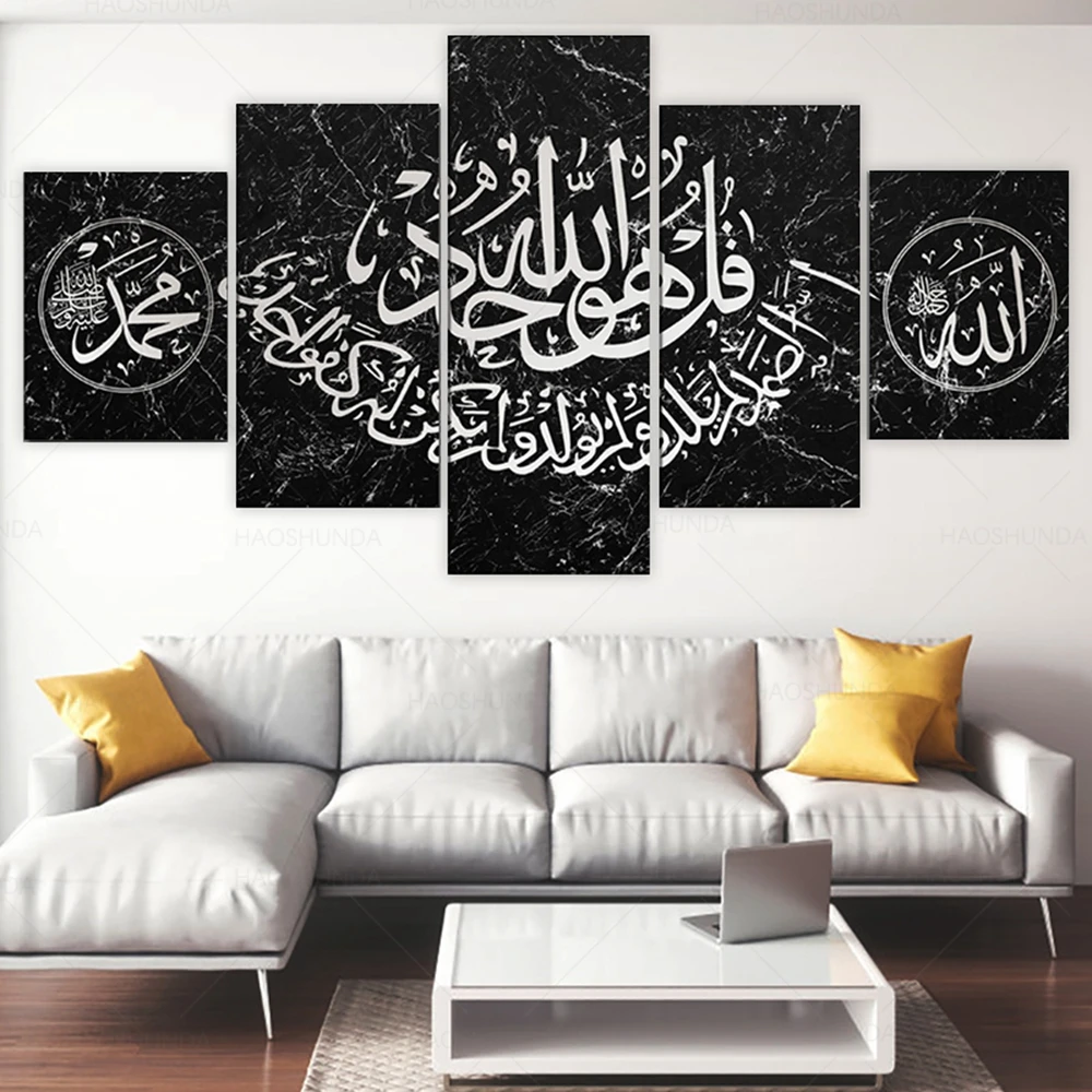 5 шт. Сура иклас Коран арабская каллиграфия мусульманская стена художественные плакаты и печать Аллах мусульманская Рамка для украшения дома