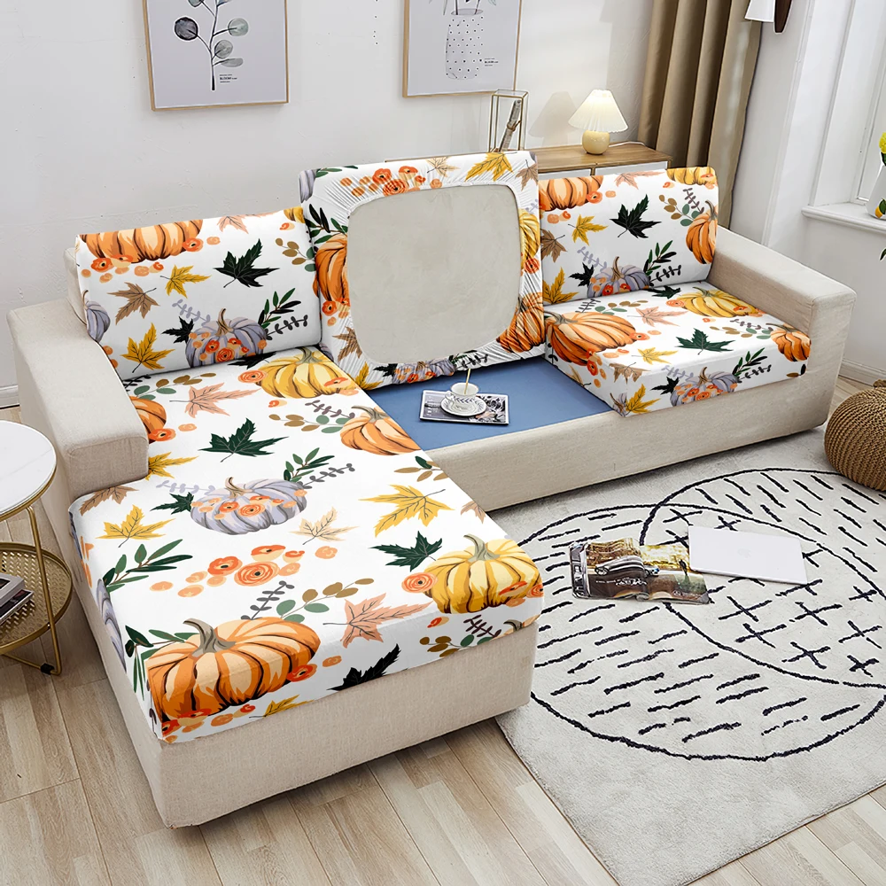 Чехол на Угловое сиденье дивана на Хэллоуин, эластичный чехол с тыквой для дивана, секционный протектор дивана, съемный чехол на диван