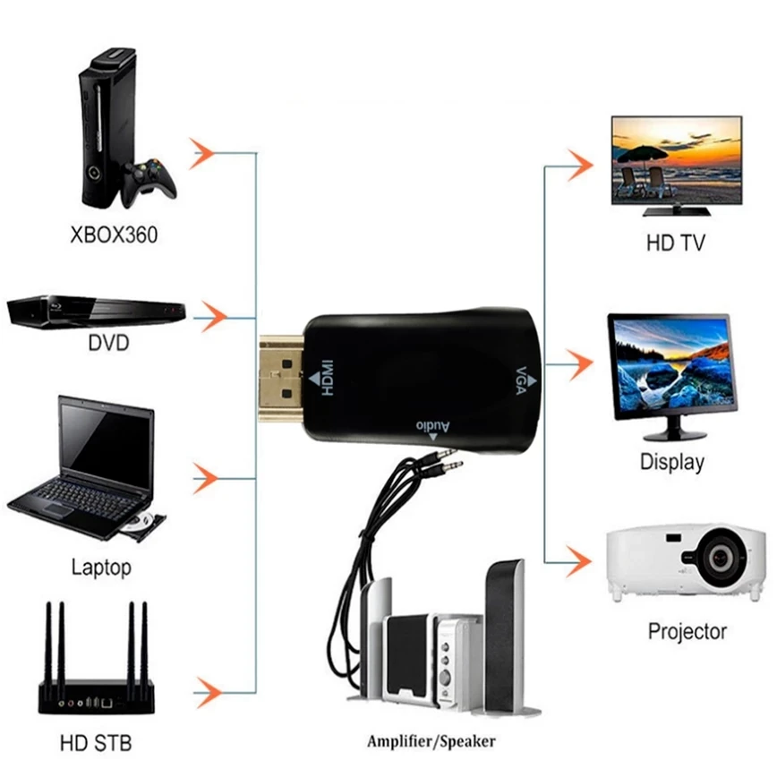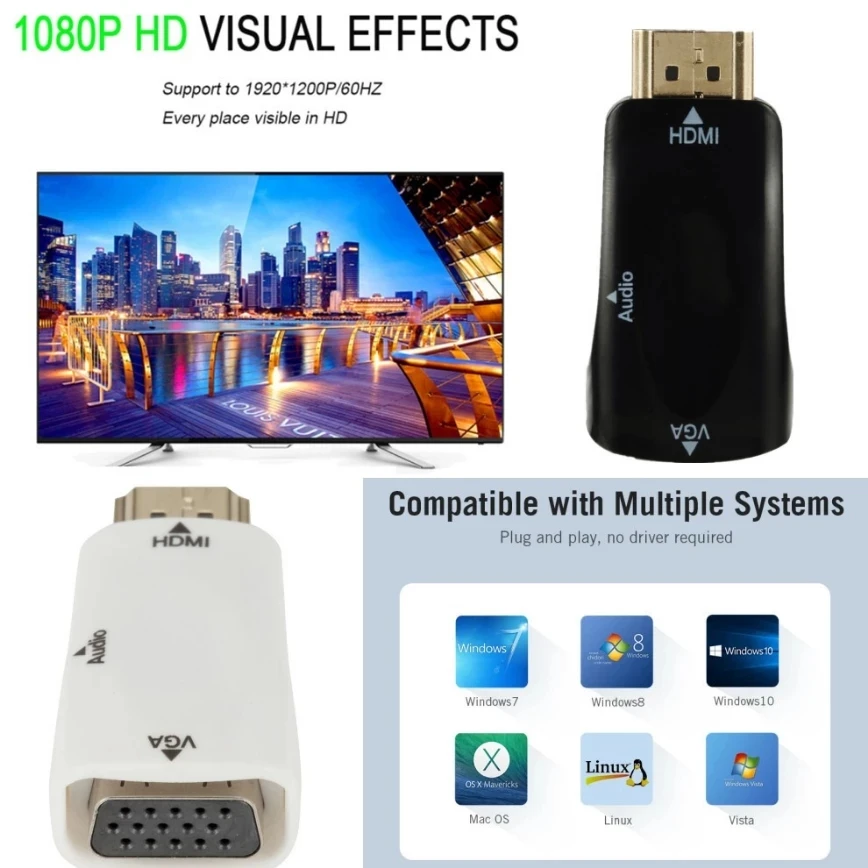 Характеристика:100% новый товар высокого качества.Характеристики:Интерфейс: HDMI-совместимый вход, VGA выход.Преобразуйте видеосигнал из цифрового в аналоговый.Обновленная версия, интегрированная с аудиовыходом.Питание Совместимо с HDMI, внешний адаптер питания не требуется.Подключи и работай, программное обеспечение не требуется.Простота в использовании: установка за считанные секунды, нет необходимости в настройках.Преобразование: он может конвертировать полный HDMI-совместимый в VGA видео.Совместим с ПК/ноутбуком/DVD / PS3 / Xbox360 / Sky HD / Apple TV и другими hd-устройствами для подключения к монитору VGA/проектору или другому дисплею.Цвет: черный, белыйПосылка включает:1 х HDMI-совместимый с VGA видео адаптер1 аудио кабель AV
