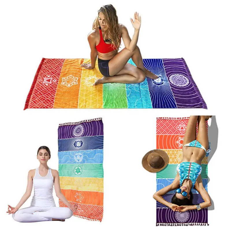 Радужный пляжный коврик в стиле бохо, одеяло с мандалой, полосатый Настенный Коврик для йоги гобелены шарф, домашний коврик