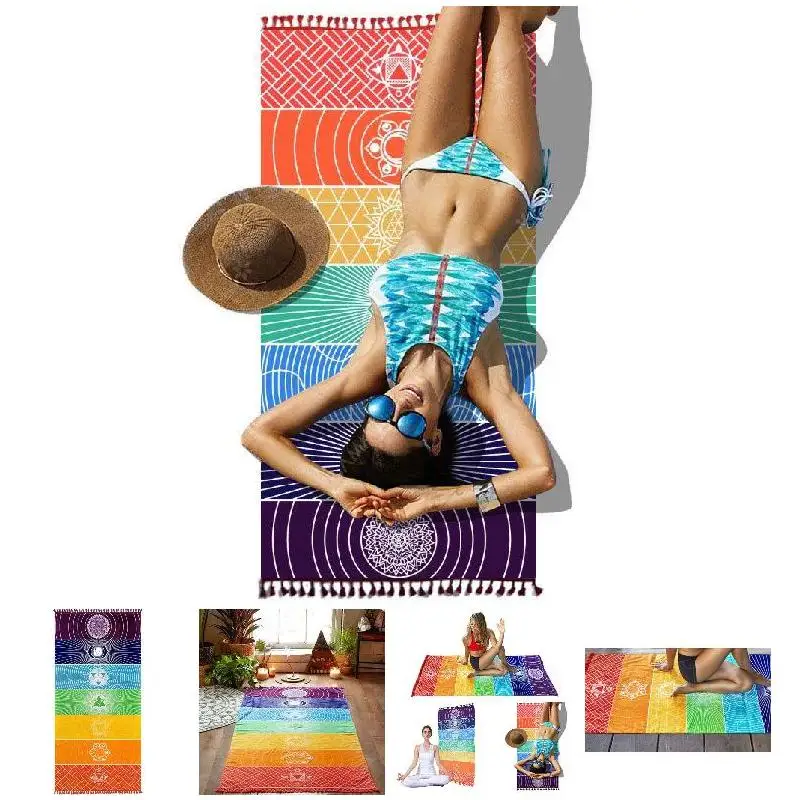 Лидер продаж, Радужный пляжный коврик, одеяло с мандалой и кисточка...