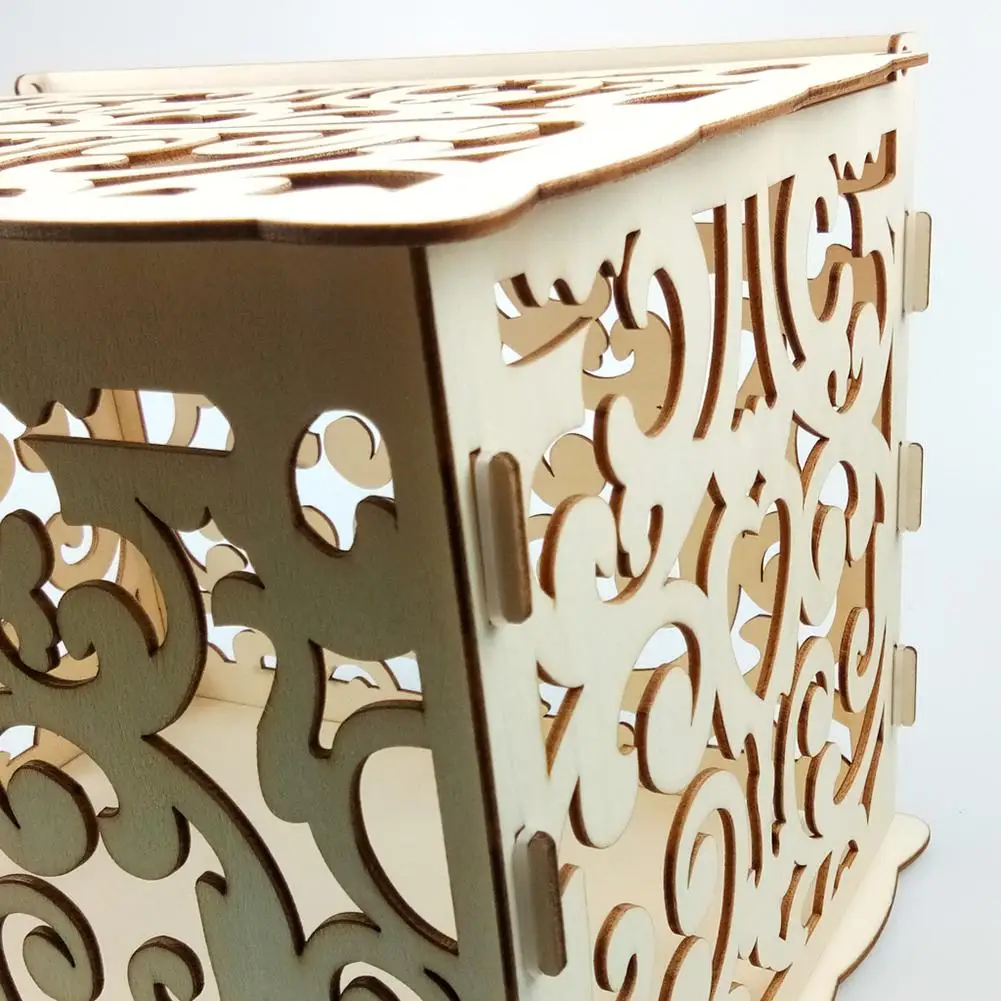 Коробка для свадебных карт сделай сам, деревянные коробочки для монет с замком, полый цветочный узор, Свадебный декор, Подарочный конверт, товары для дня рождения