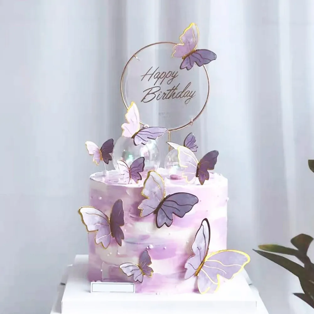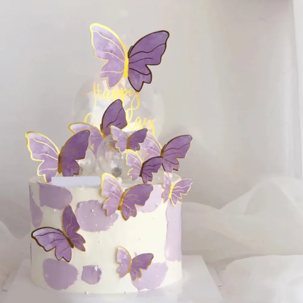 Розовые фиолетовые бабочки украшения для торта хромированные золоты...