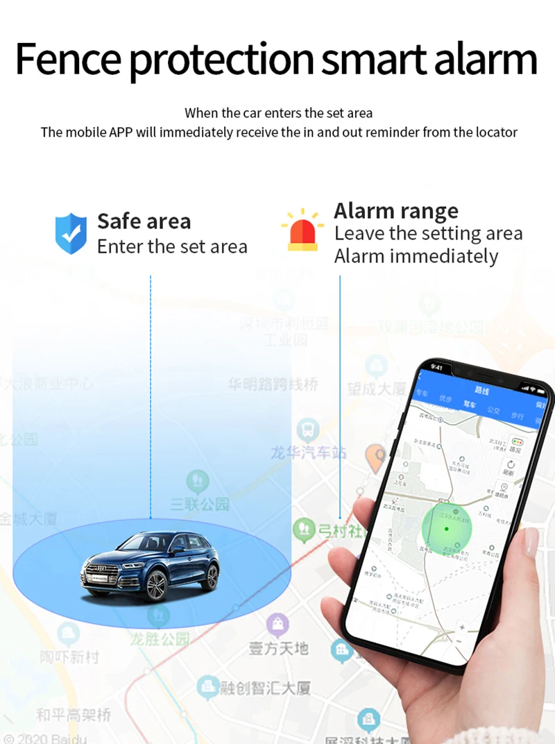 2. Напоминание о безопасности ограждения: Установите безопасную зону. Когда автомобиль входит или покидает безопасную зону, мобильный телефон получит здесь напоминание. Вы можете отслеживать автомобиль, не открывая приложение.