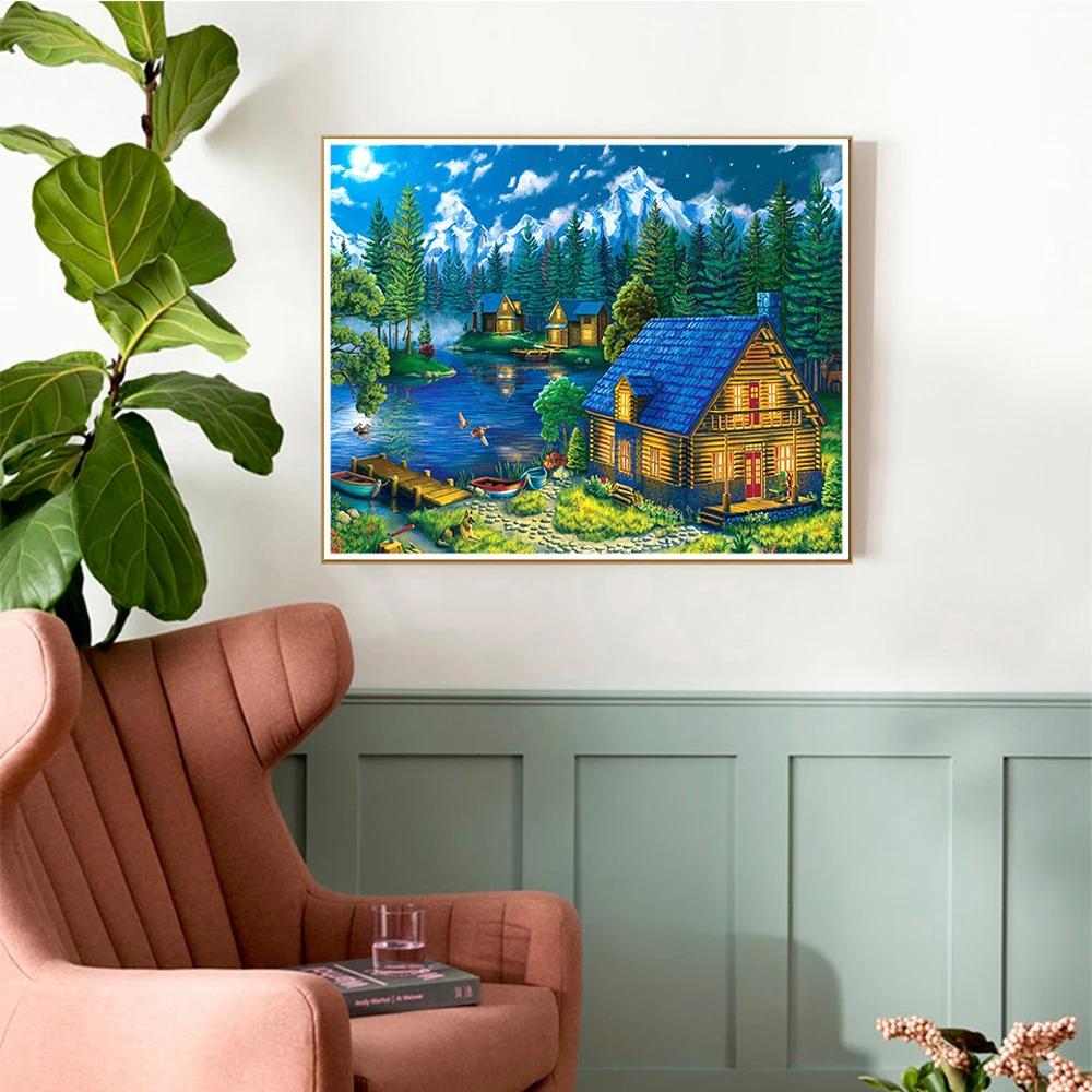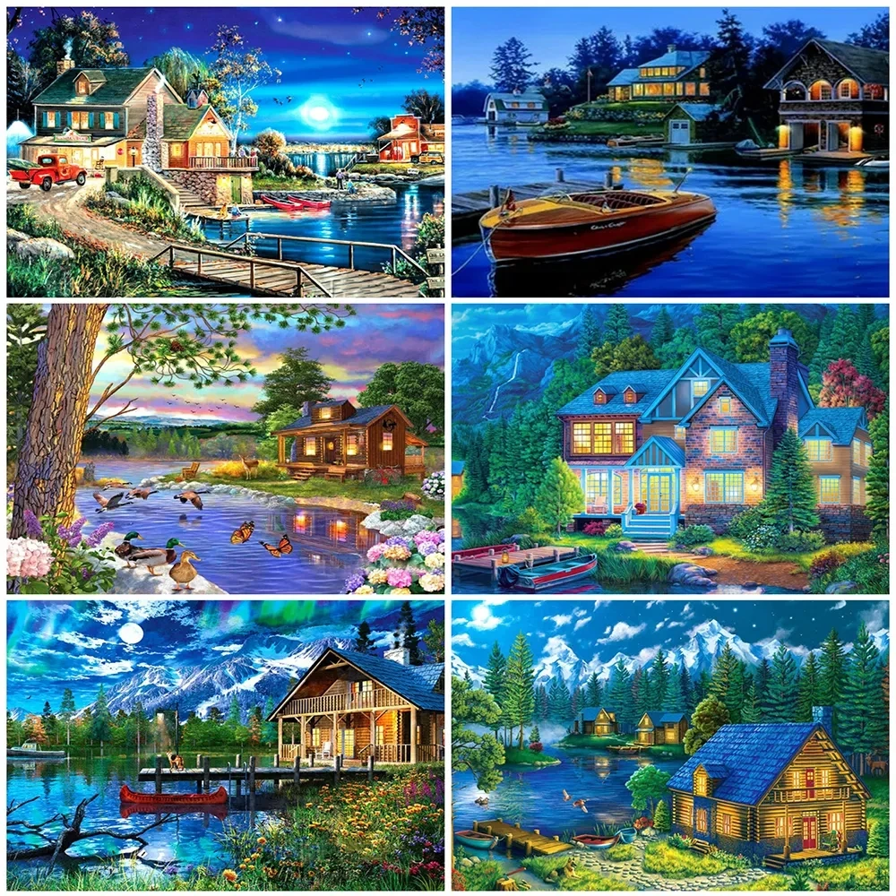 AMY- DIY алмазная живопись ночной дом 5D полная квадратнаякруглая Алмазная вышивка пейзаж Мозаика Декор для дома подарок