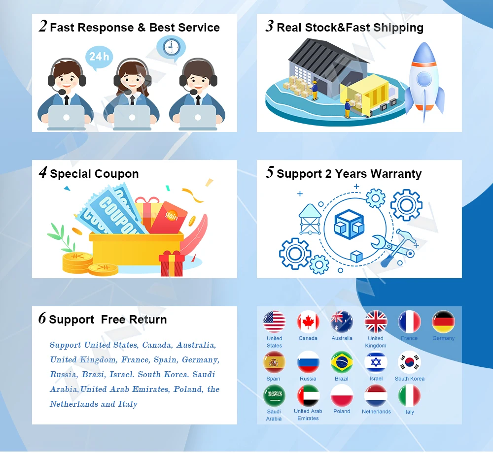 Наша продукция имеет 2 года гарантии, по любым вопросам, пожалуйста, оставьте нам сообщение, и наша команда послепродажного обслуживания будет готова поддержать вас в любое время