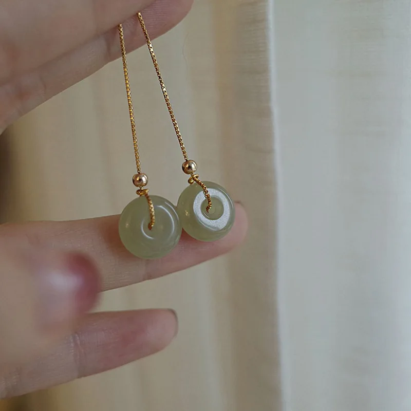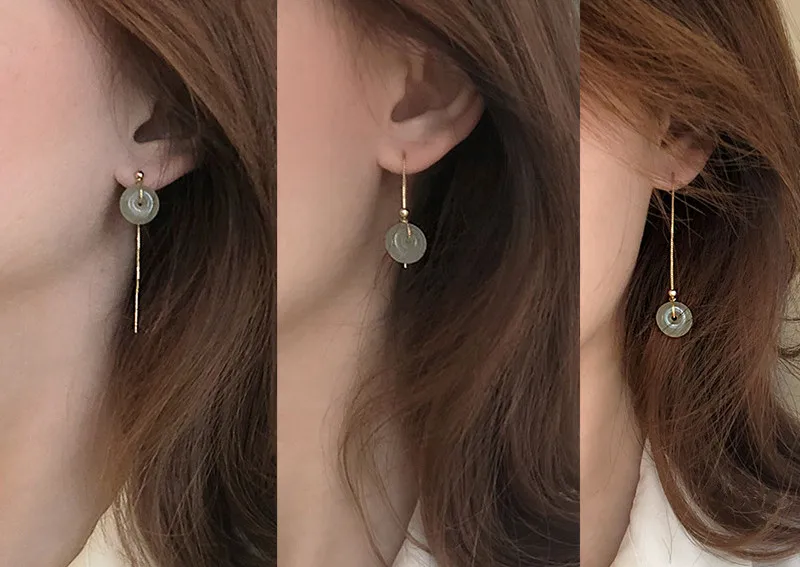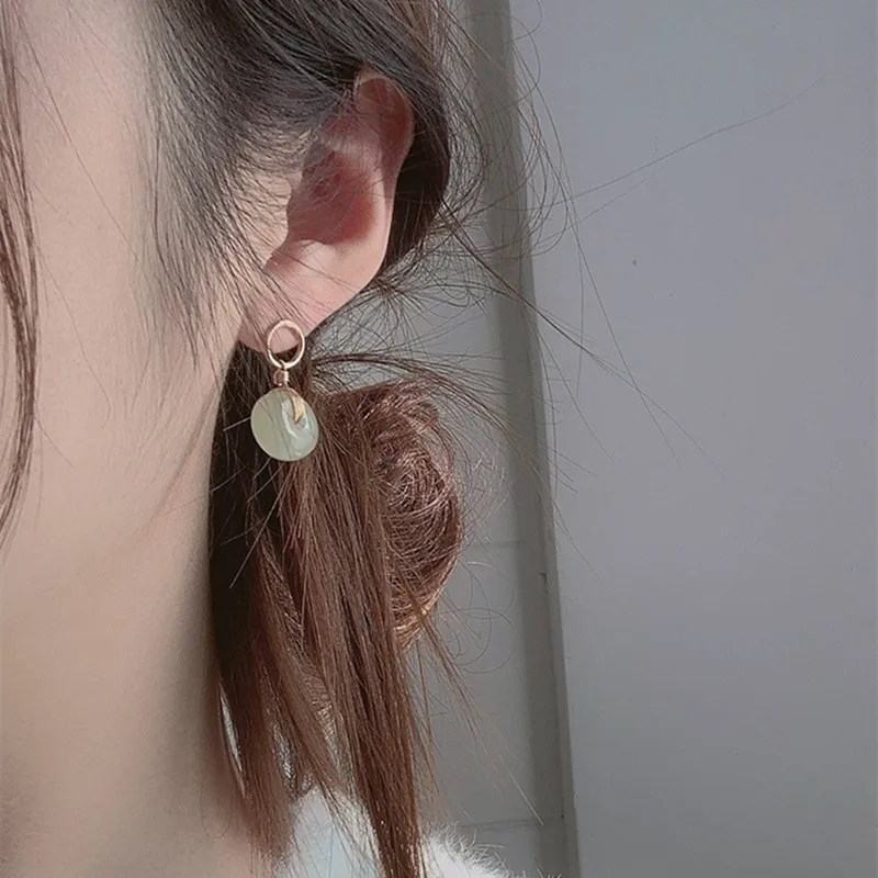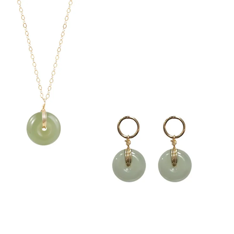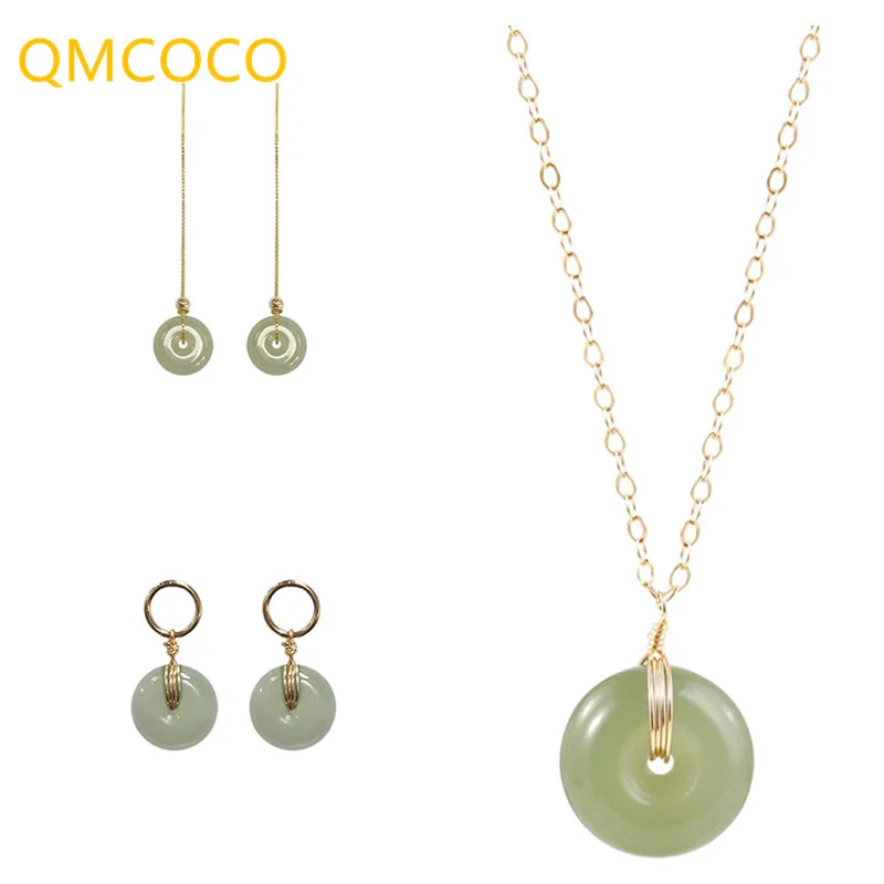QMCOCO круглый зеленый каменные подвесные украшения Набор Винтажный простой золотистый ожерелье + серьги для женщин и девочек 925 серебряные ювелирные изделия подарок