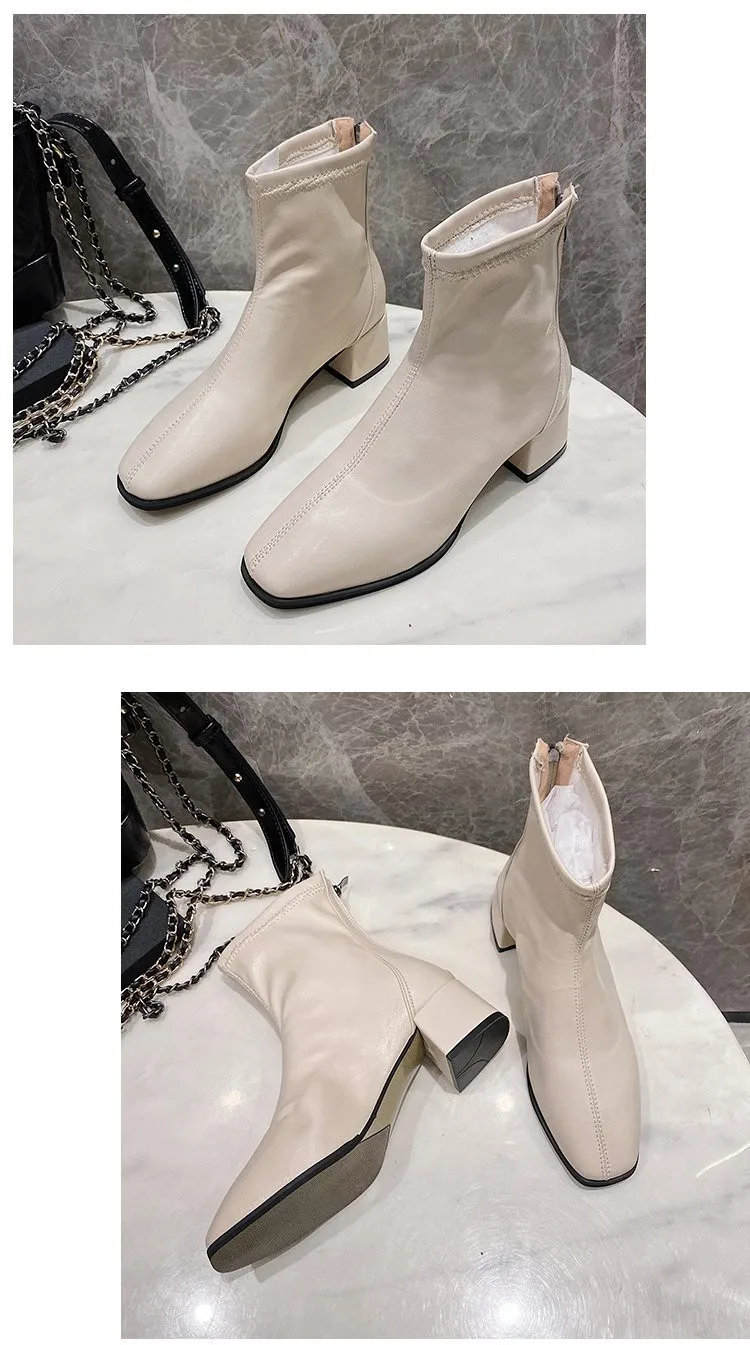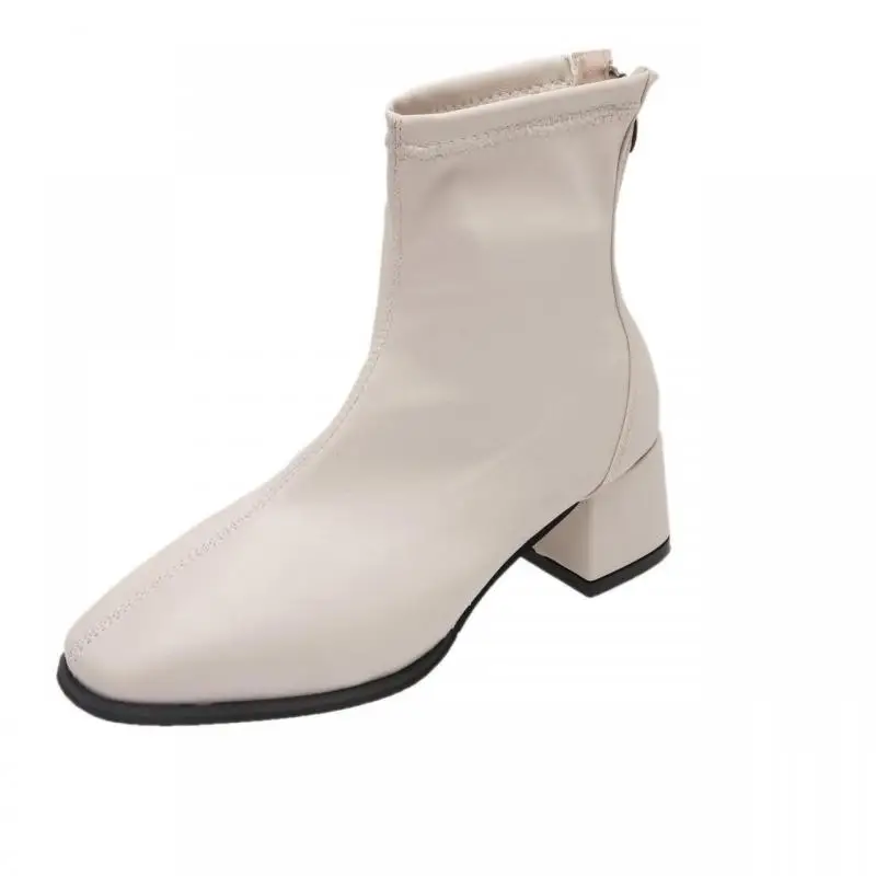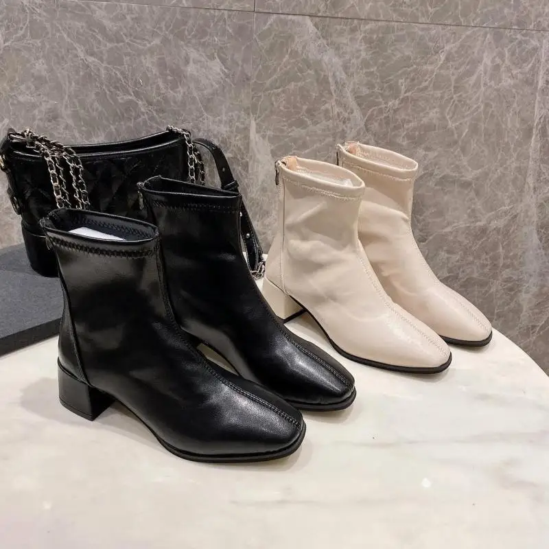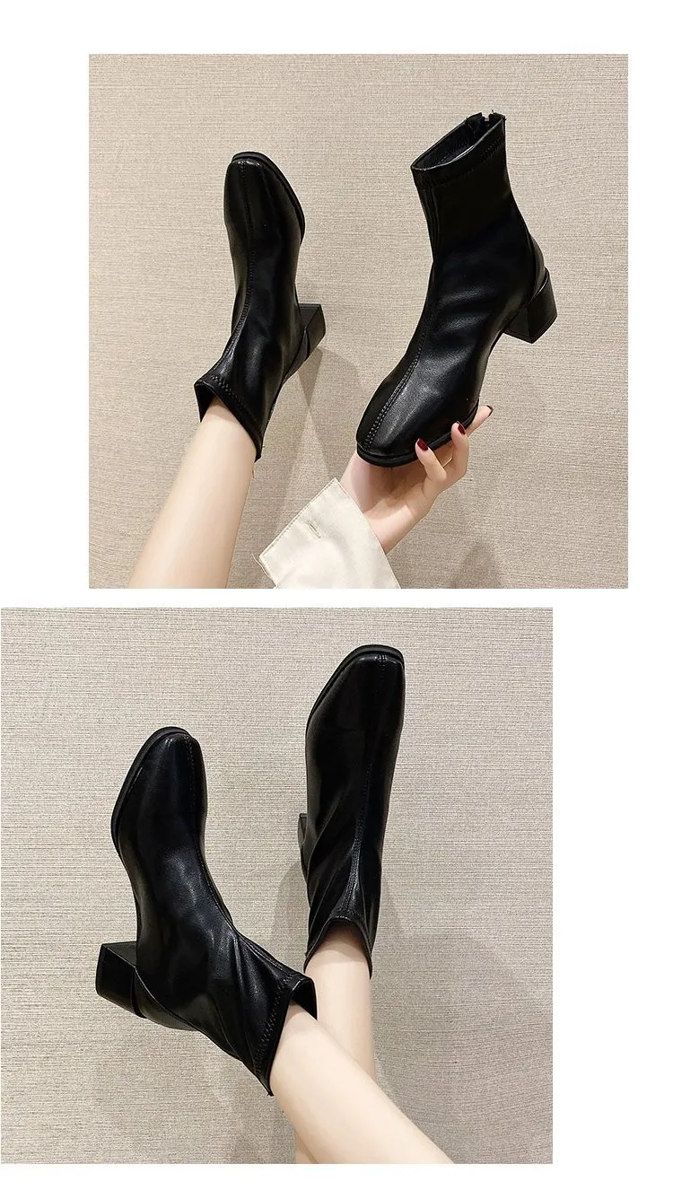 Сапоги женские на среднем каблуке, с квадратным носком, на молнии, весна 2021