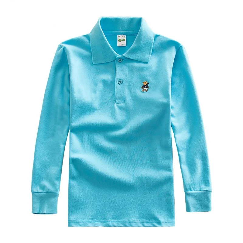 Рубашка для маленьких мальчиков, рубашки для мальчиков, одежда, рубашка-поло, наряды, рубашка-поло с мультяшной вышивкой и длинными рукавами, школьные топы для подростков