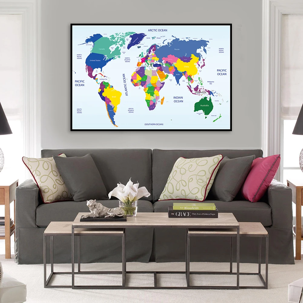 A2 размер политическая карта мира в Испании Картина на холсте насте...