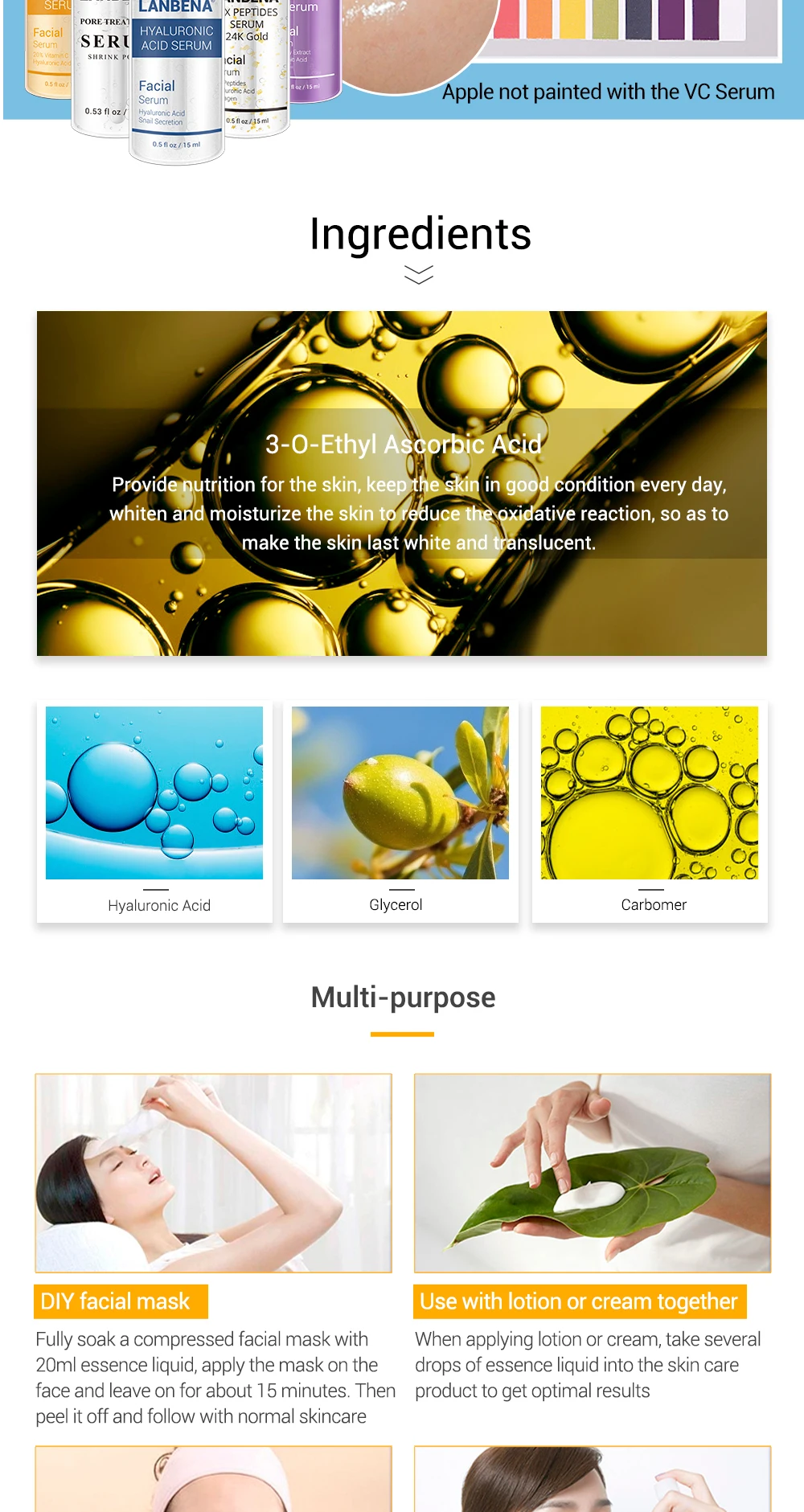 LANBENA Сыворотка для ухода за лицом Витамин С Гиалуроновая кислота...