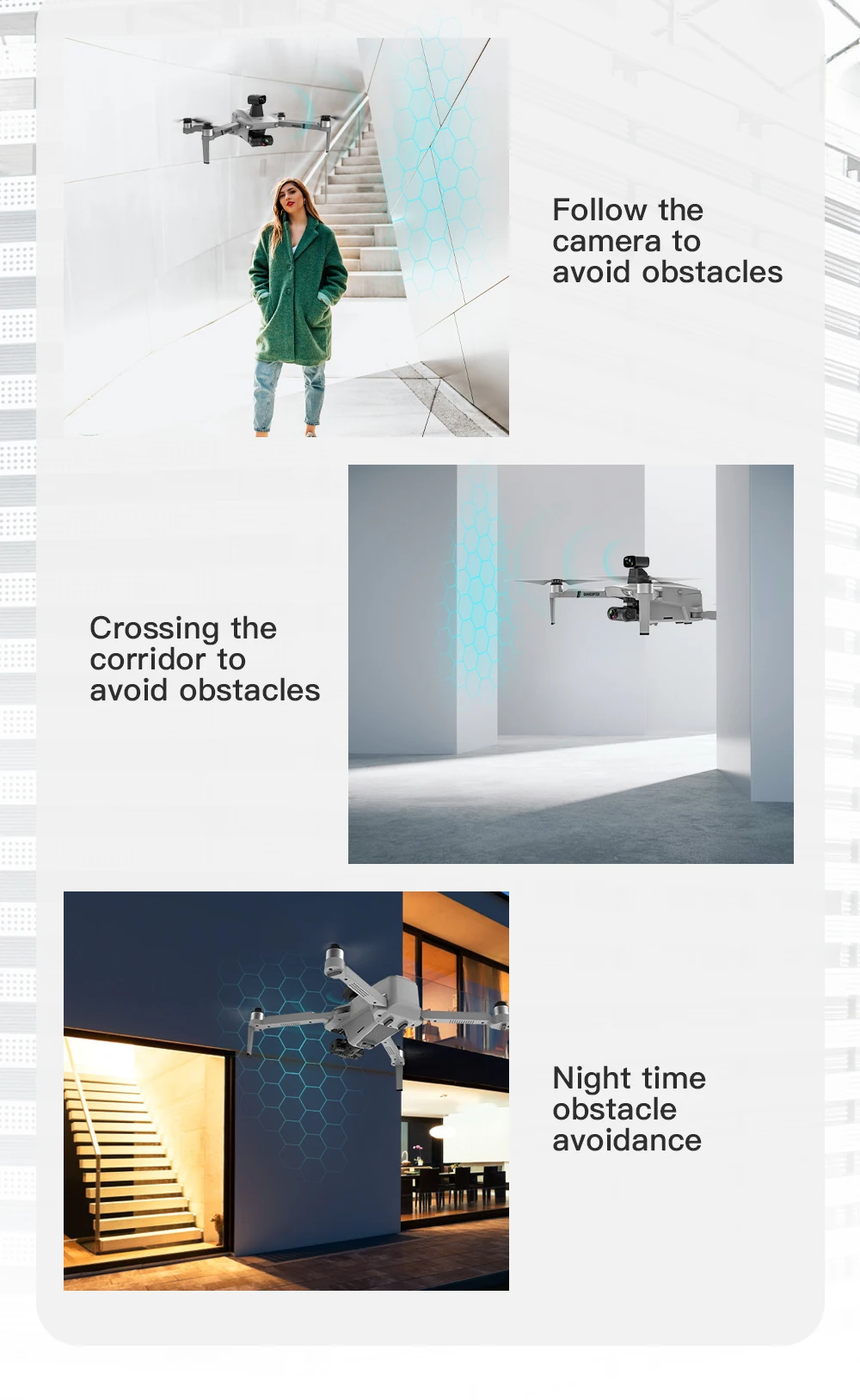 4.GPS Smart следующее: после того, как самолет покинет GPS, он откроет следующую функцию приложения, и самолет будет следовать за мобильный телефон. Кроме того, следующее изображение: обнаружение объекта съемки и автоматическое отслеживание полета.
