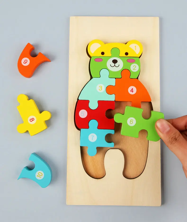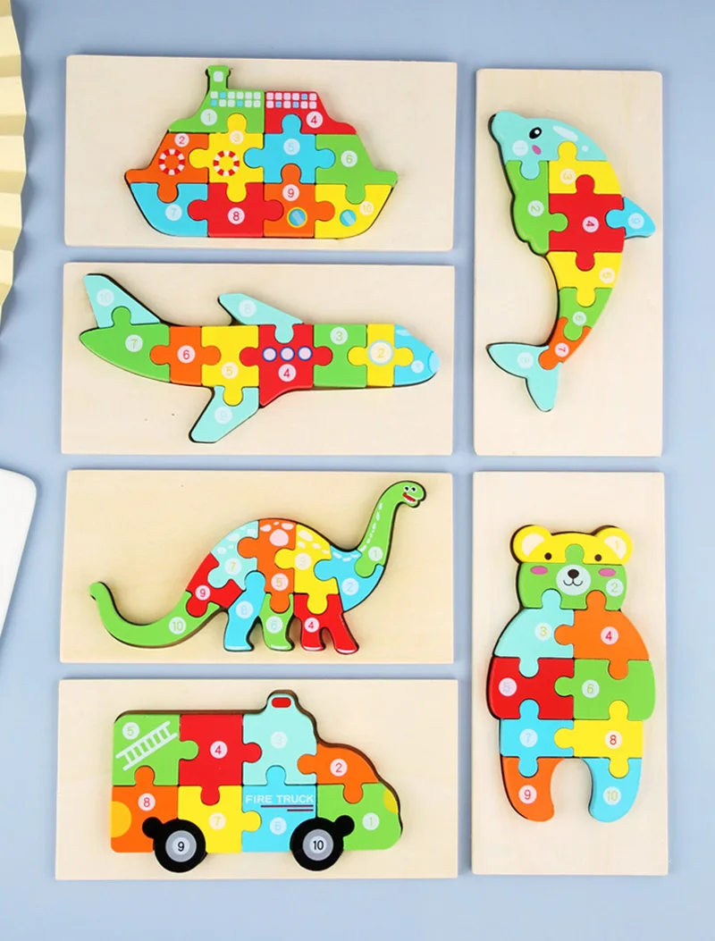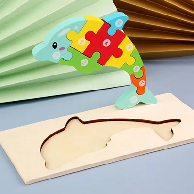 Детские игрушки Монтессори деревянный пазл 3D Животные головоломки ...