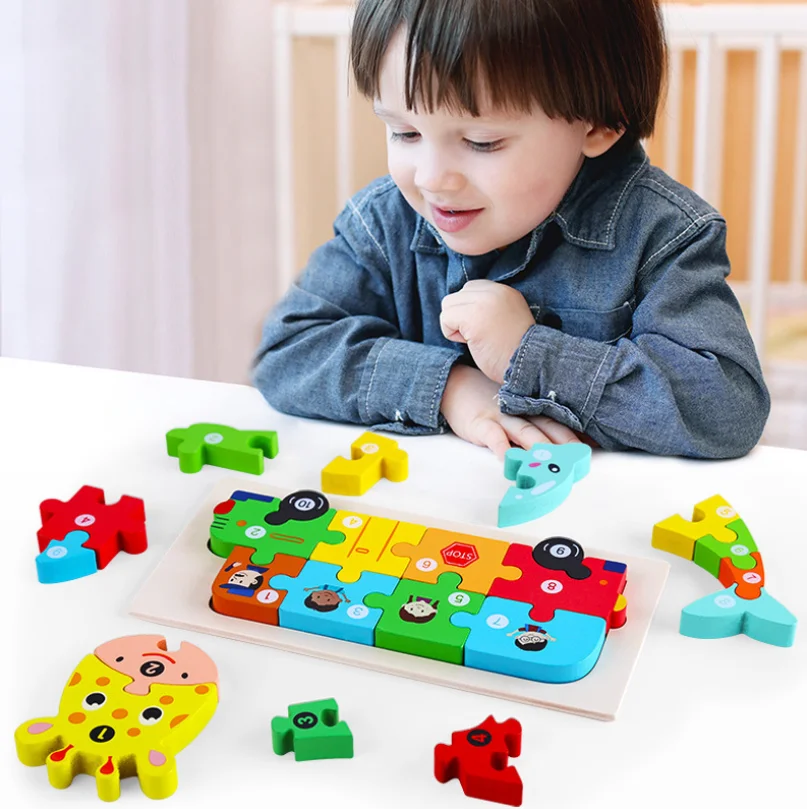 2. Помогает малышам познавать динозавра жирафа гусеницы и крокодила во время игры. А также стимулирует развитие координации рук и глаз вашего ребенка, внимание и количество. Это хорошие Пазлы для формирующего образования ребенка.