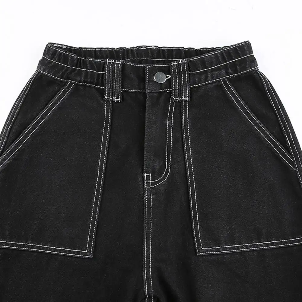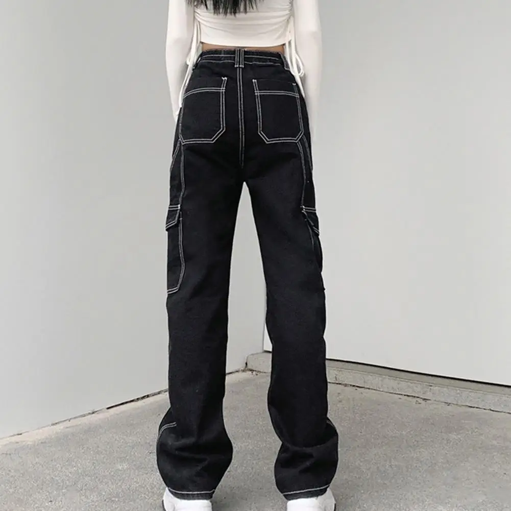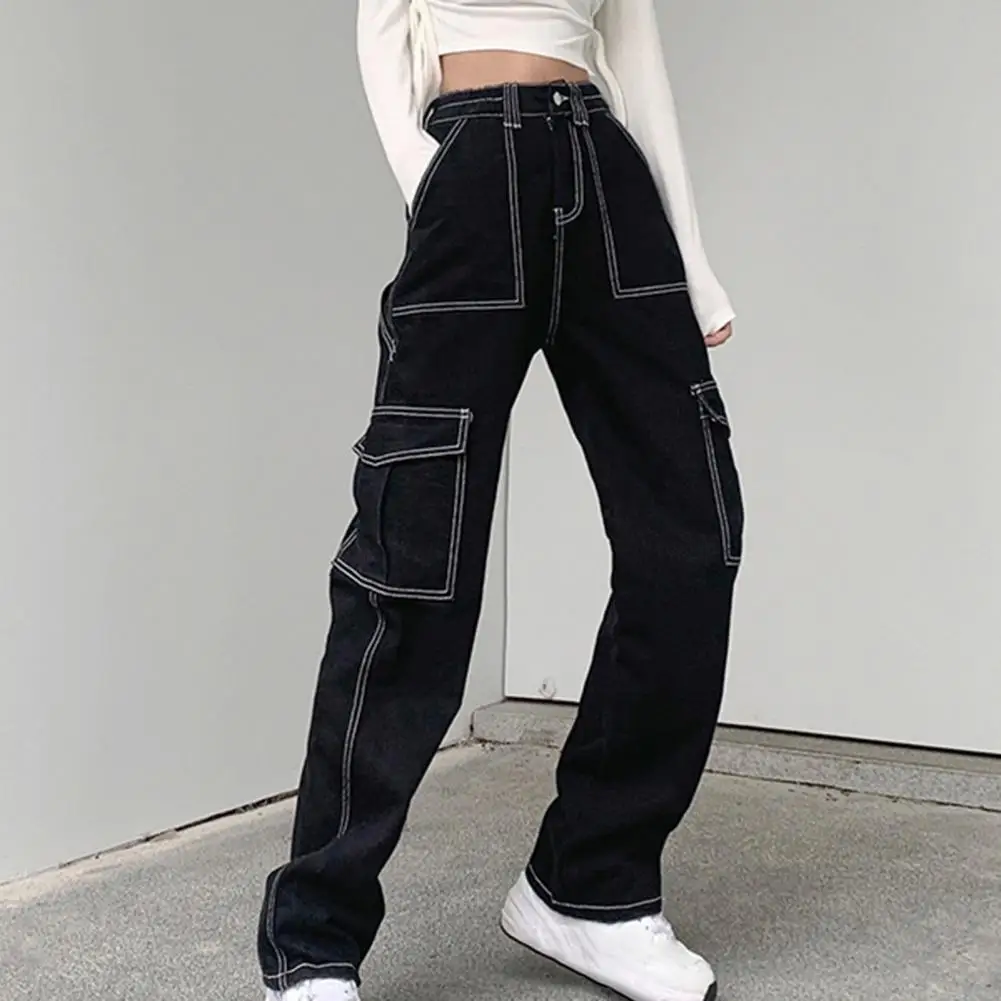 Модные женские джинсы с высокой талией и множеством карманов, зимние прямые широкие брюки в стиле пэчворк из денима, уличная одежда