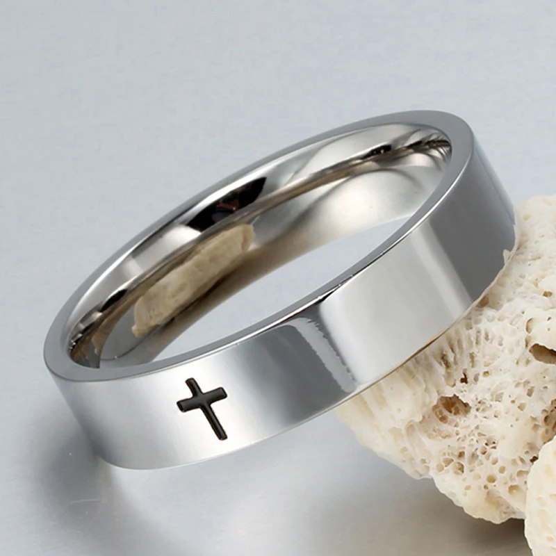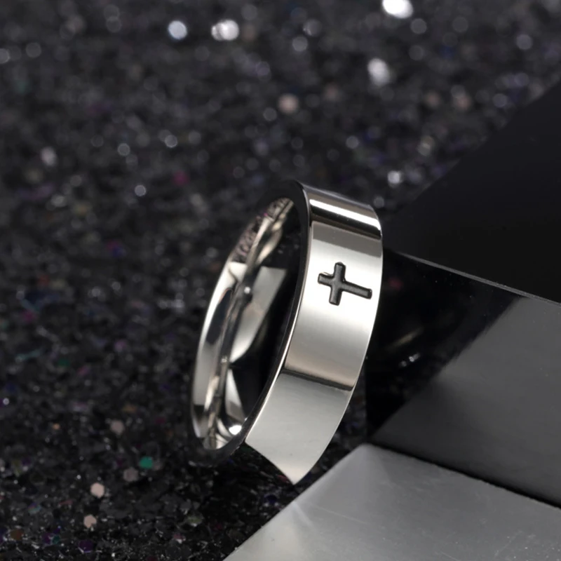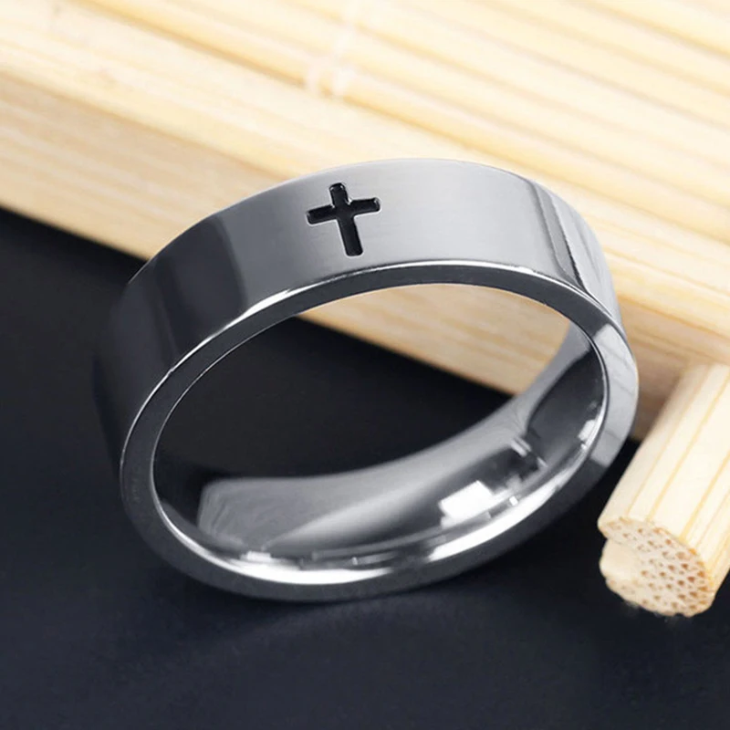 Кольцо с крестом из нержавеющей стали, 6 мм, 8 мм, христианский Иис...