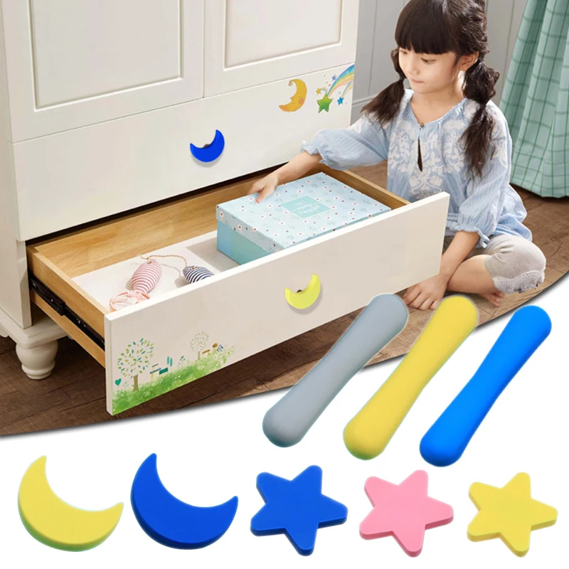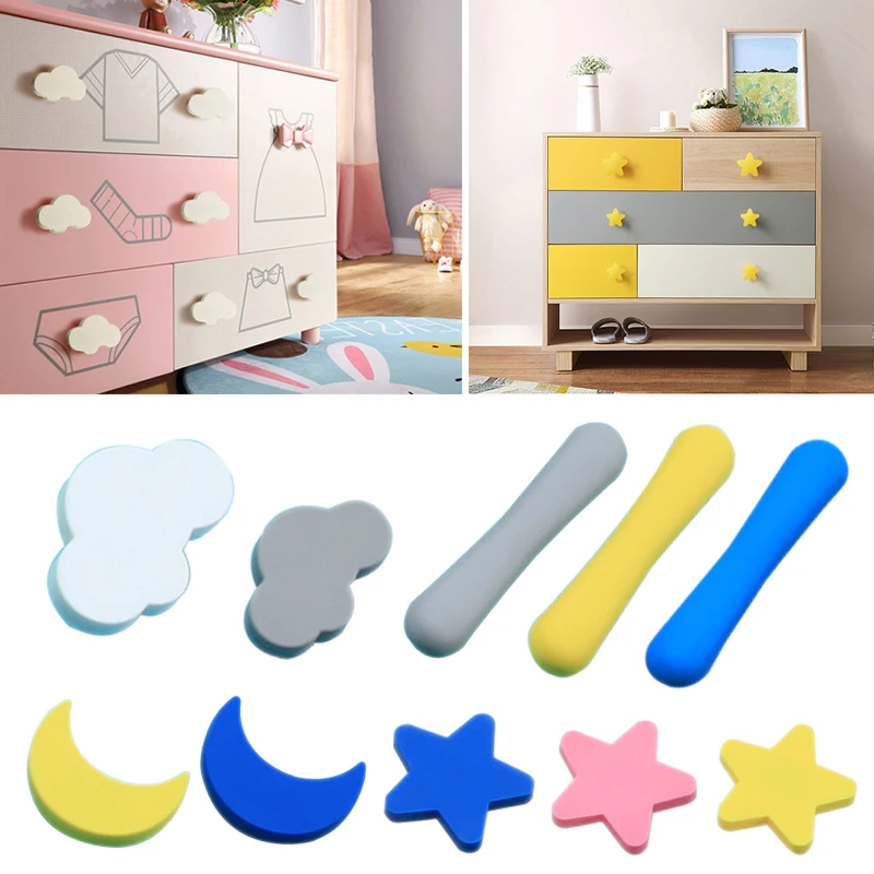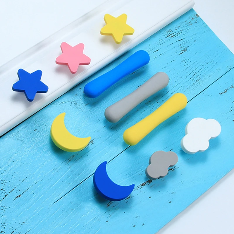 Ручки для детской комнаты, Нескользящие, с мультяшными рисунками звезд, Луны, облаков, мебельные ручки для ящиков и дверей шкафов