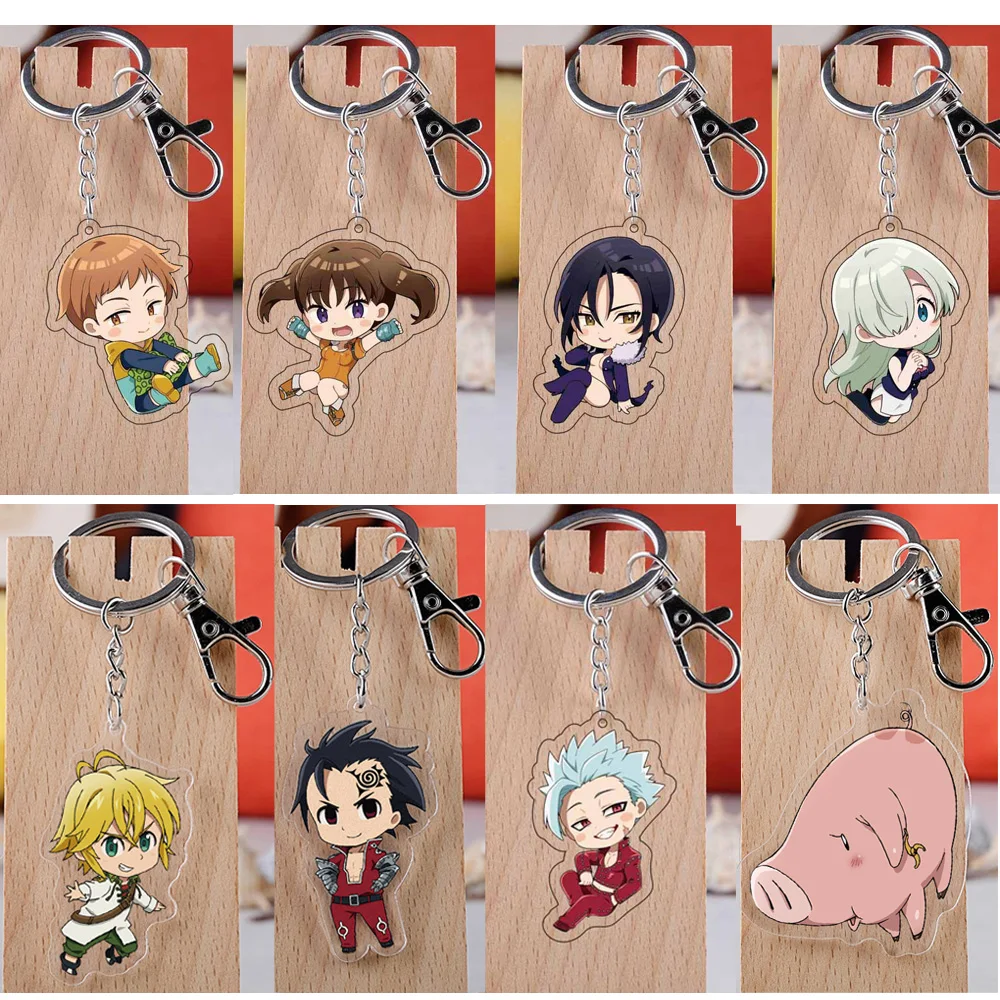 Брелок для ключей с мультяшными персонажами аниме Семь смертных грехов, акриловый, Диана бан эсканор, мелиодас, 20 шт.лот, оптовая продажа