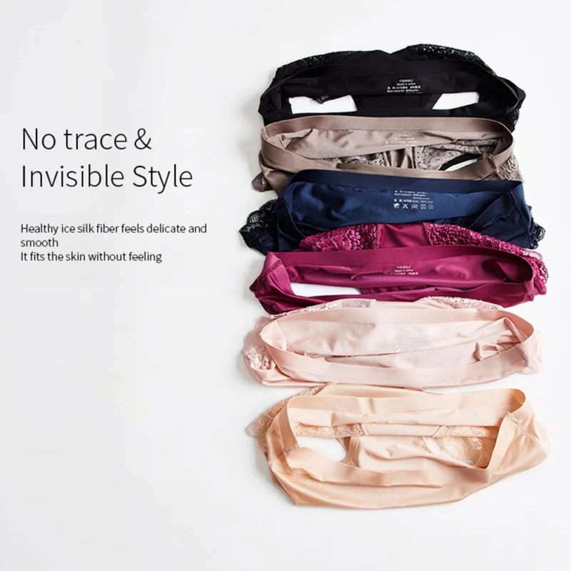 Женское сексуальное кружевное нижнее белье из ледяного шелка без следов, роскошное кружевное сексуальное нижнее белье со средней посадкой, бесшовные трусики