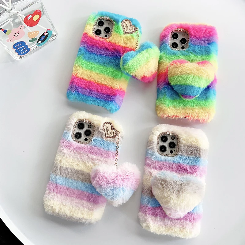 3D милый пушистый плюшевый мягкий меховой Радужный чехол для телефо...