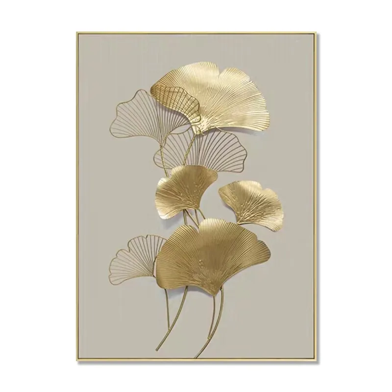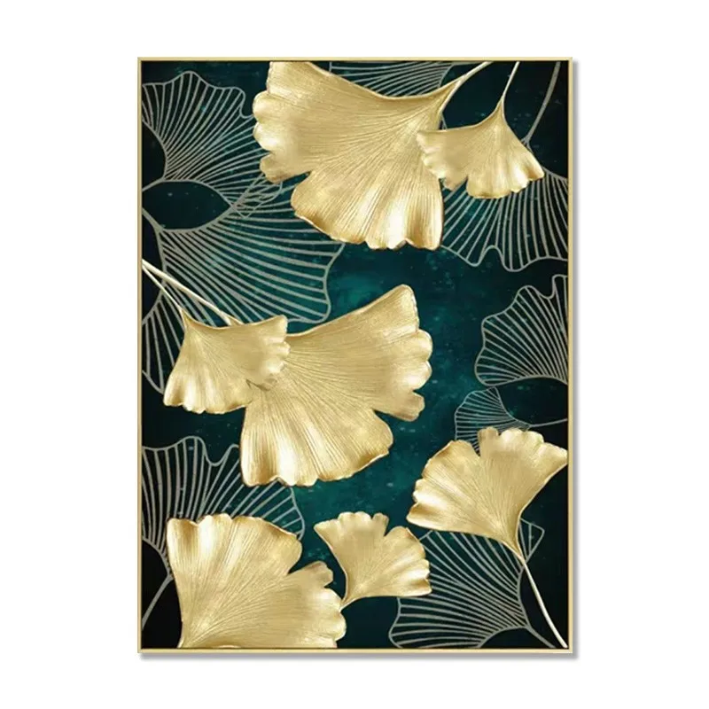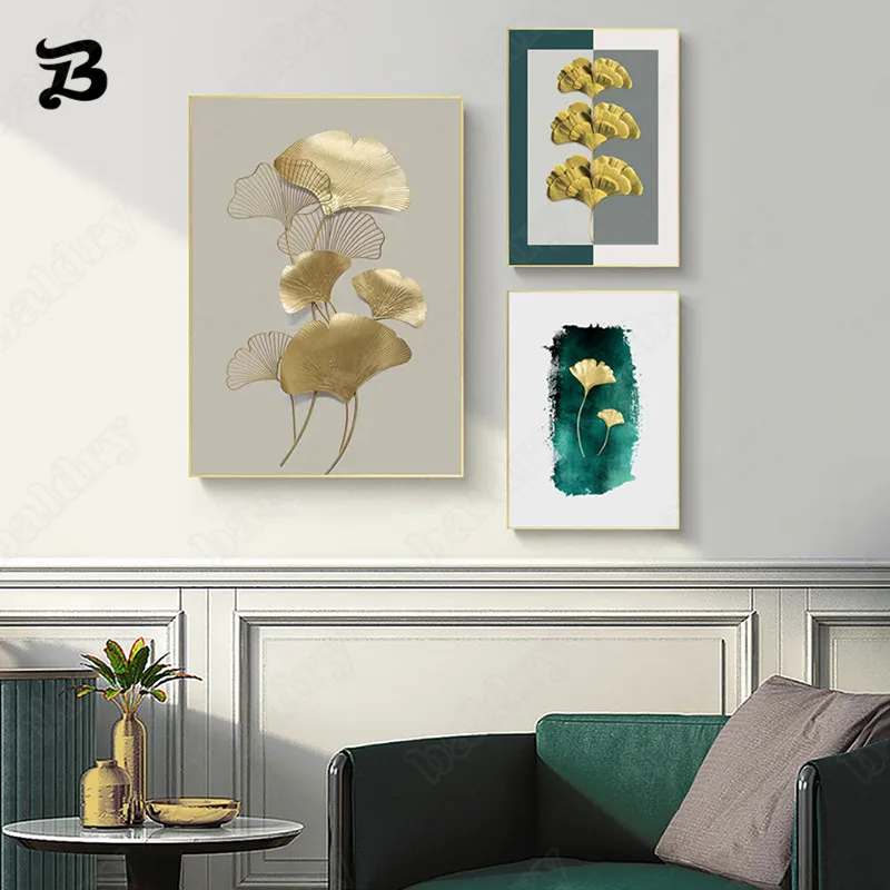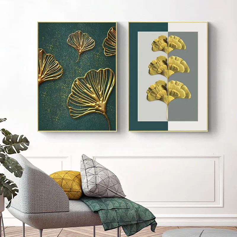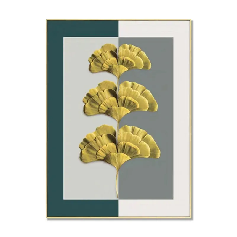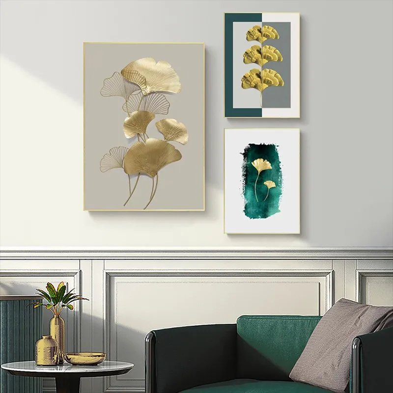 Картина на холсте для гостиной, абстрактные зеленые и желтые листья, настенное искусство, золотые растения, ретро, настенные картины, Современное украшение для дома