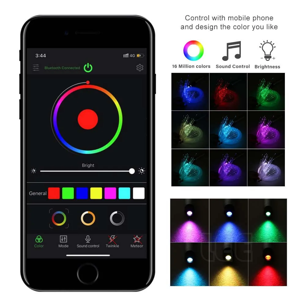 DC12V 6 Вт RGB автомобильный потолочный светильник на крыше s светодиодный волоконно-оптический потолочный светильник и приложение Touch RF Control для PMMA волоконно-оптический кабель светильник ing