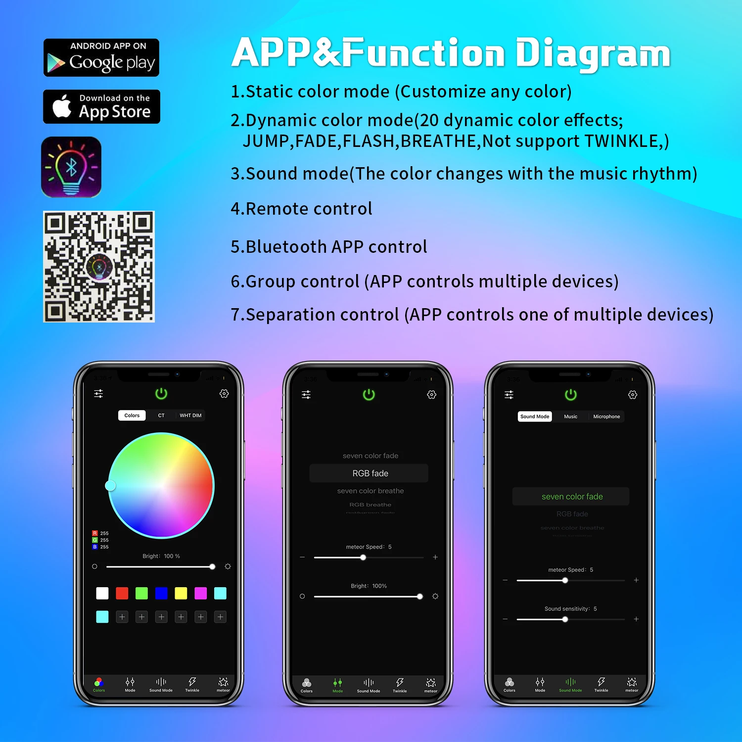 Параметры-Входное напряжение: DC12V-Мощность: 6 Вт-Внутренний диаметр волоконной головки: 16-20 мм-Светильник Материал корпуса: алюминий-Рабочая температура:-20 градусов Цельсия-50 градусов Цельсия-Светильник: 12 цветов (красный), Зеленый, синий, желтый, белый, голубой, розовый и т. д.)-Светильник: статический Одноцветный (красный), Зеленый, синий, желтый, белый, голубой, розовый и т. д.) и RGB светильник-Изменение (вспышка, выцветание, скачок) и регулировкаЯркость-Светильник Размер устройства: L137 * Φ35 мм-Срок службы: более 50000 часов-Светодиодный светильник Гарантия двигателя: 2 года-Вес: 0,4 кг6W Контроль приложения:1. Пожалуйста, загрузите приложение «Мой умный светодиодный»2. Подключение устройства Bluetooth(1) Откройте Bluetooth мобильный телефон;(2) Включение лампы; Затем откройте приложение;(3) в это время приложение будет автоматическиПодключите светильник Bluetooth.** Не подключайте Bluetooth к этому устройству вручнуюВ настройках Вашего телефона.Посылка в комплекте-1x6w RGB app волоконно-оптический светильник
