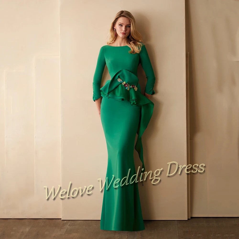 Простое зеленое платье для матери невесты, мягкое платье-футляр в пол, с круглым вырезом и открытой спиной, Дешевое платье для матери жениха, женское платье для вечерние ринки
