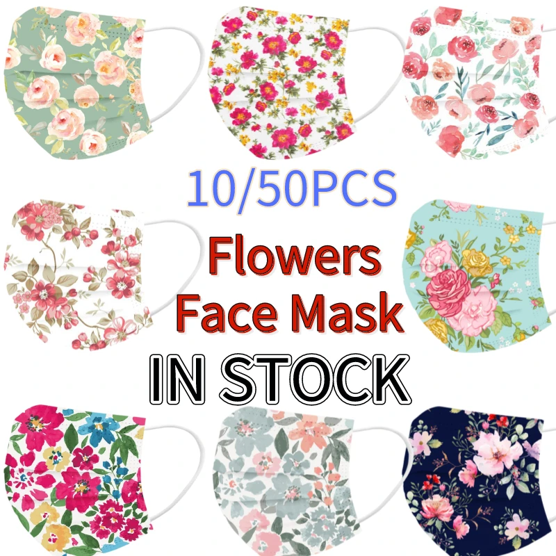Быстрая доставка цветочный принт 50 шт взрослые одноразовые маски д...