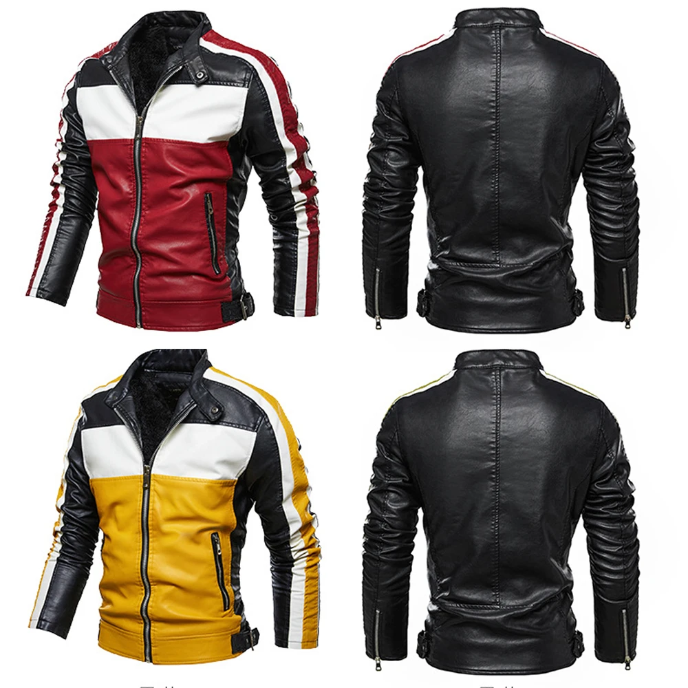 Мужская кожаная куртка, желтая повседневная куртка на молнии, Байкерская приталенная куртка с меховой подкладкой, Мужская мотоциклетная куртка