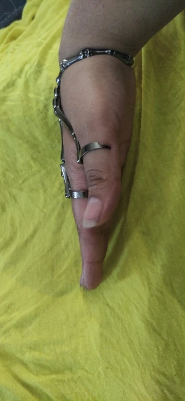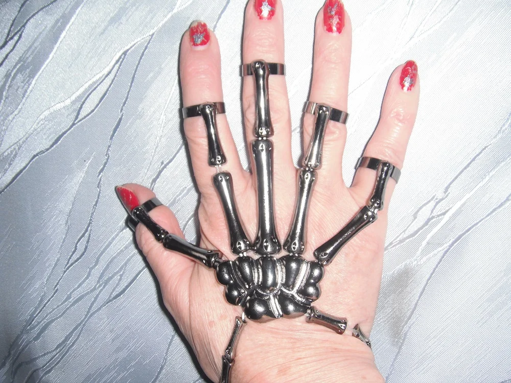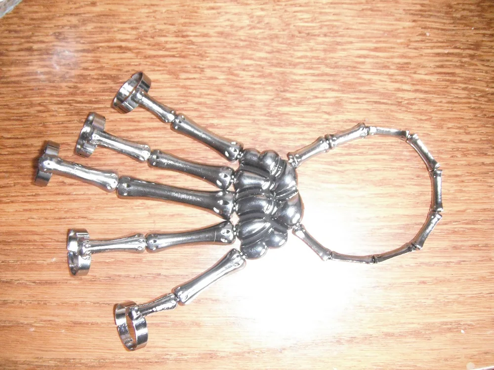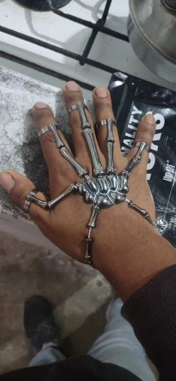 Браслет очень крутой, кольца регулируются. Весит не много, но вес ощущается. Внутри резинки, которые держат части браслета и помогают ему сгибаться. Единственный минус - сделали слишком длинный средний палец, он неудобно сгибается. А так все хорошо, пришло быстро. И цена классная.