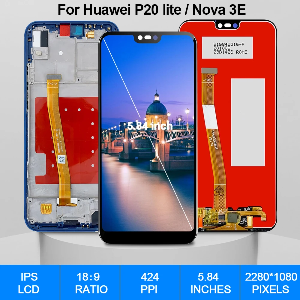 Оригинальный дисплей для Huawei P20 Lite, ЖК-дисплей с рамкой для Nova 3e, сенсорный экран, цифровой преобразователь, детали для замены