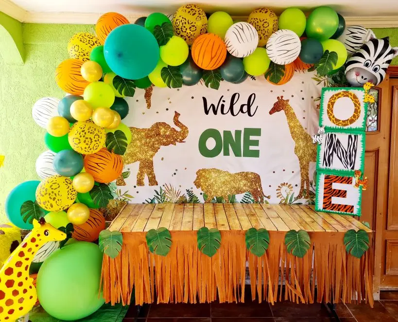 Фон для вечерние графирования новорожденных с изображением джунглей леса дикого одного сафари