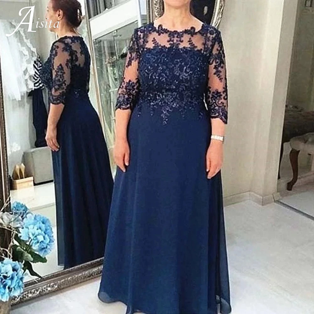 Женское ТРАПЕЦИЕВИДНОЕ ПЛАТЬЕ для матери невесты, Элегантное Длинное Свадебное платье с рукавом 34 и глубоким вырезом, платье для гостей