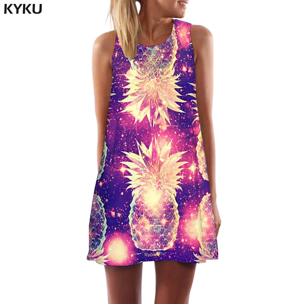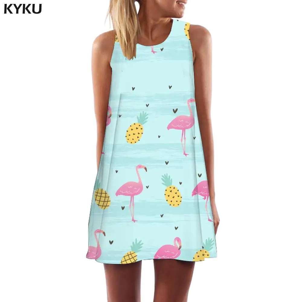 Женское короткое пляжное платье KYKU, винтажный сарафан с изображением лебедя и ананасов, большие размеры, лето