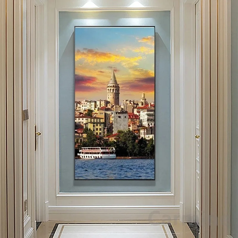 Алмазная живопись 5D сделай сам, пейзаж, прибрежной город, вышивка крестиком, мозаика, картина с полными кругами и квадратными стразами, украшение для дома