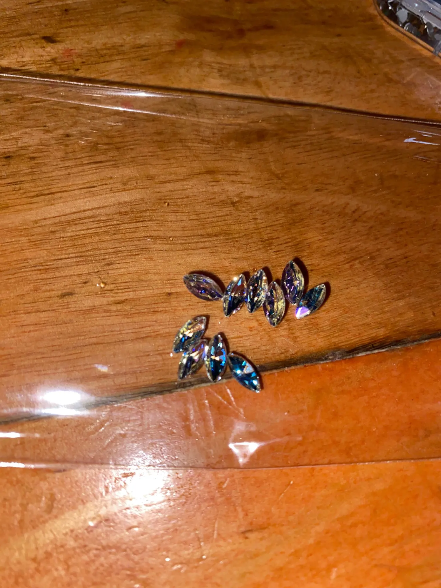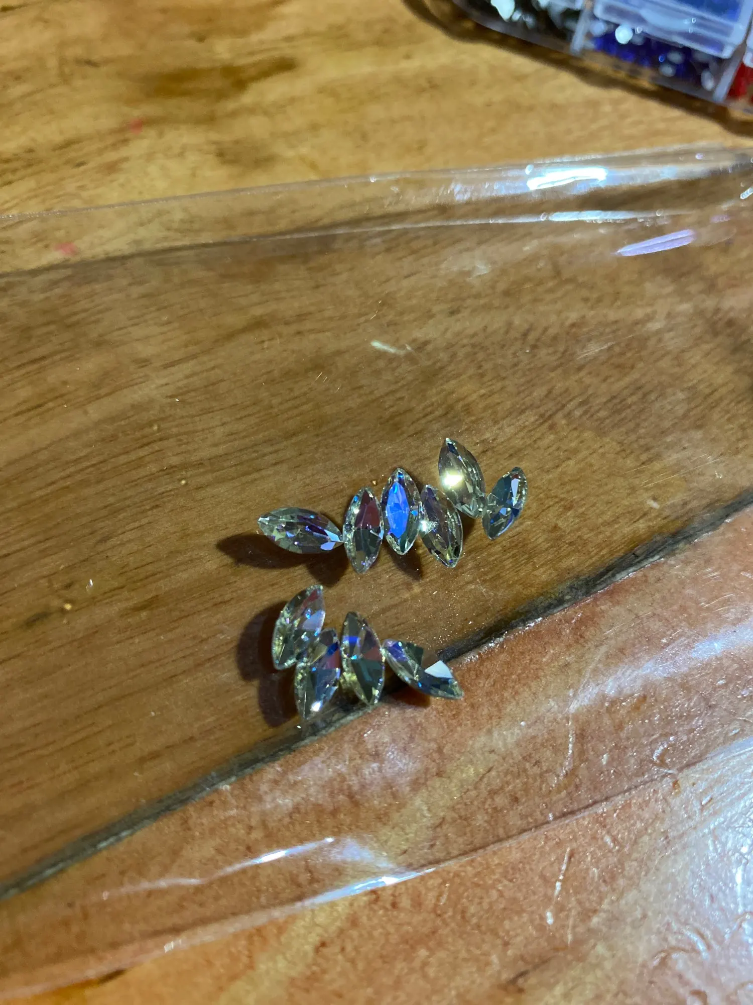 Блестящие кристаллы, роза, водяной опал, пришивные стразы с когтями...