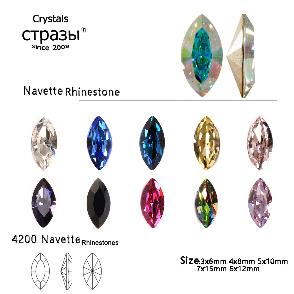 Цвет: прозрачный, ab, золотой, синий и т. Д.Форма: NavetteМатериал: Хрустальное стеклоУпаковка: 4x8 мм-10 шт.Используется для: нейл-арта, одежды, обуви, сумок...Вид транспорта: UPS DHL FEDEX TNT AliexpressДемонстрация товара:
